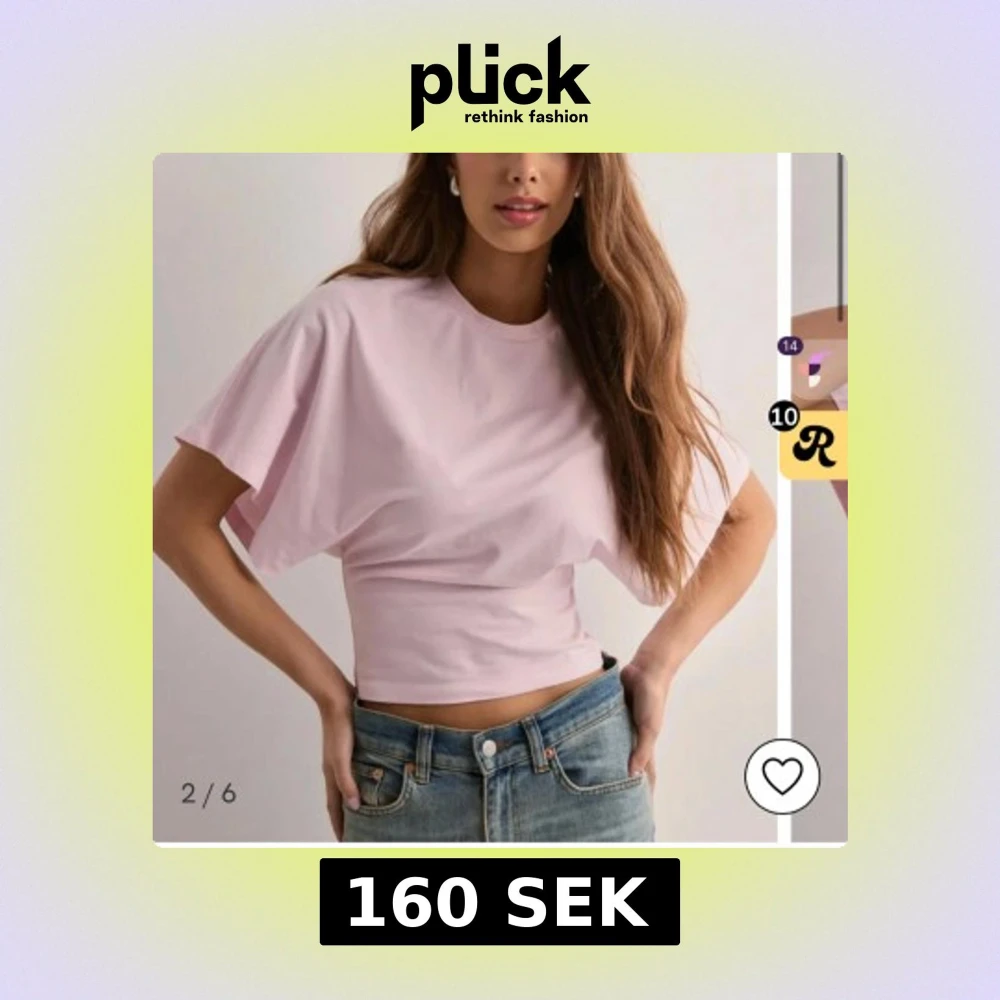 Trendig ljusrosa croppad topp med rund halsringning och vida, korta ärmar. Perfekt till jeans eller kjol för en avslappnad look.