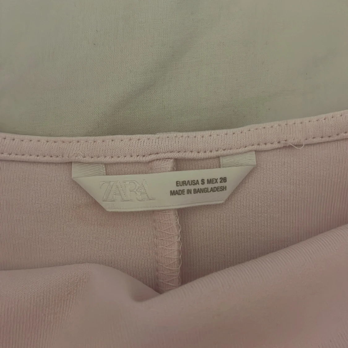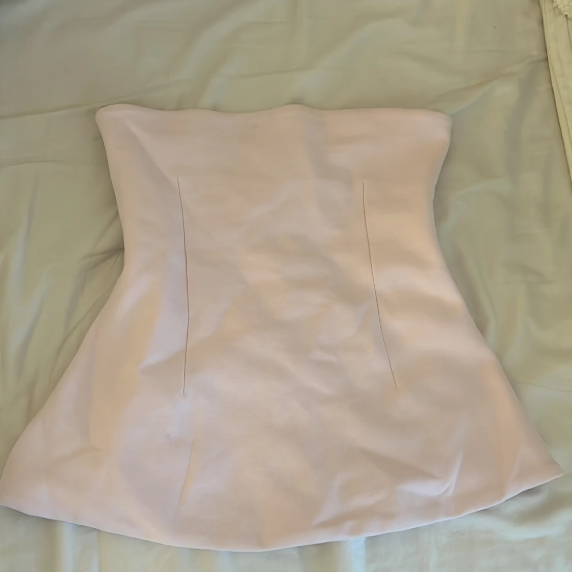 Supersnygg ljusrosa korsettopp från Zara med figurnära passform och lätt utsvängd nederkant. Toppen är axelbandslös och har en stilren, minimalistisk look som passar perfekt till jeans eller kjol. Perfekt för dig som vill ha en trendig och feminin vibe.