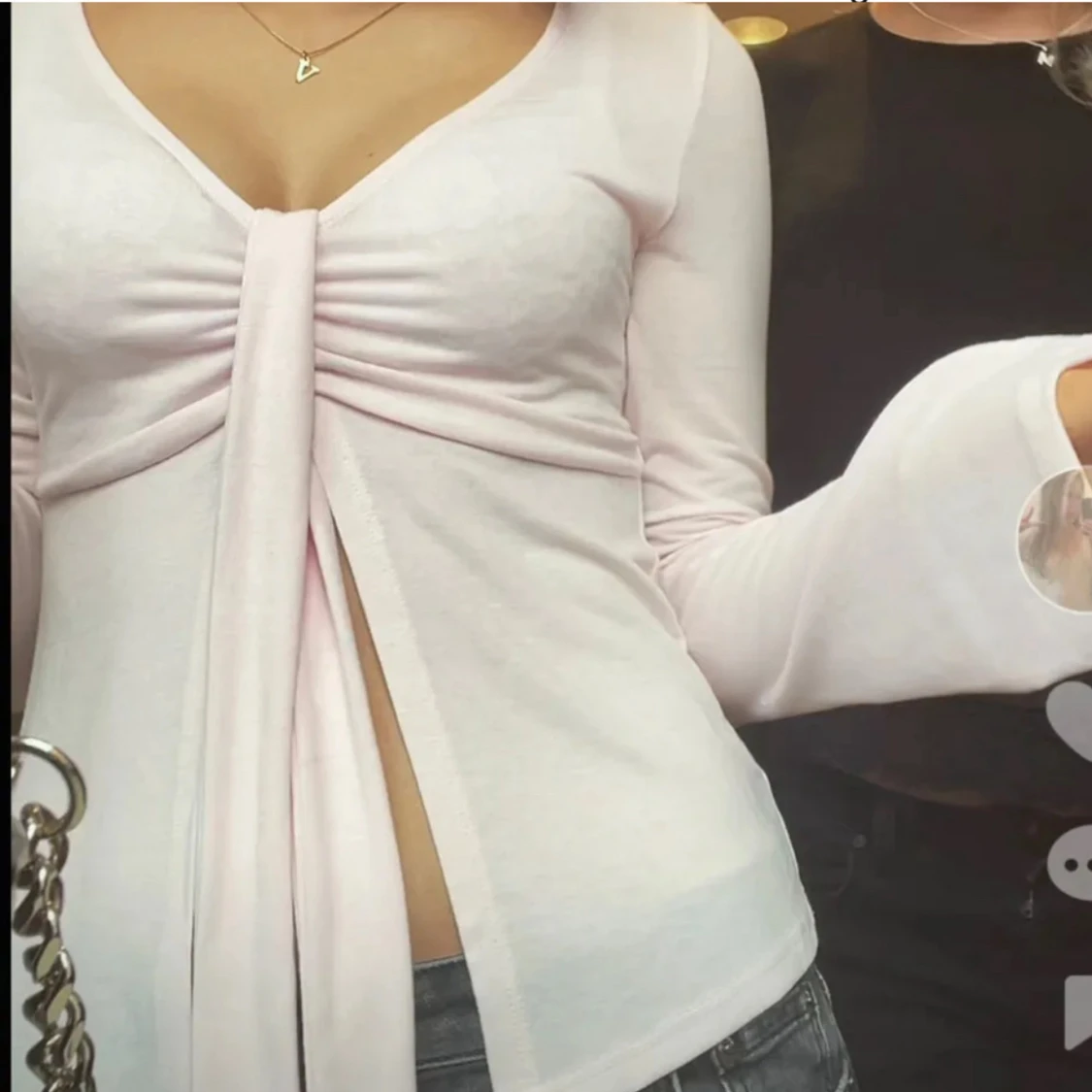 Ljusrosa långärmad topp med knyt
