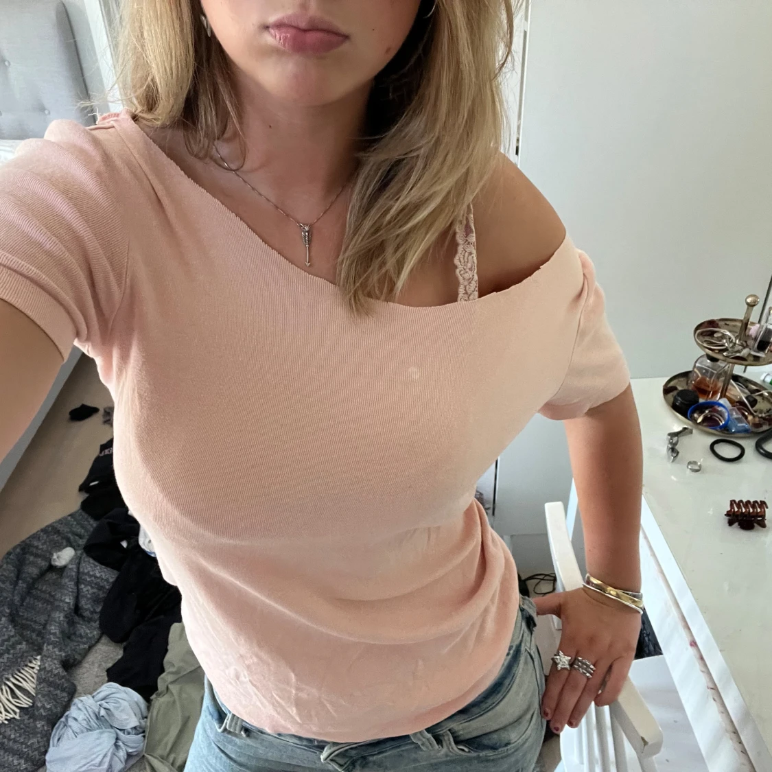 Säljer en ljusrosa topp som jag själv klippt av (därför ej perfekt). Toppen har en avslappnad passform och är tillverkad i mjuk bomull. Perfekt för dig som gillar en chill och trendig look.