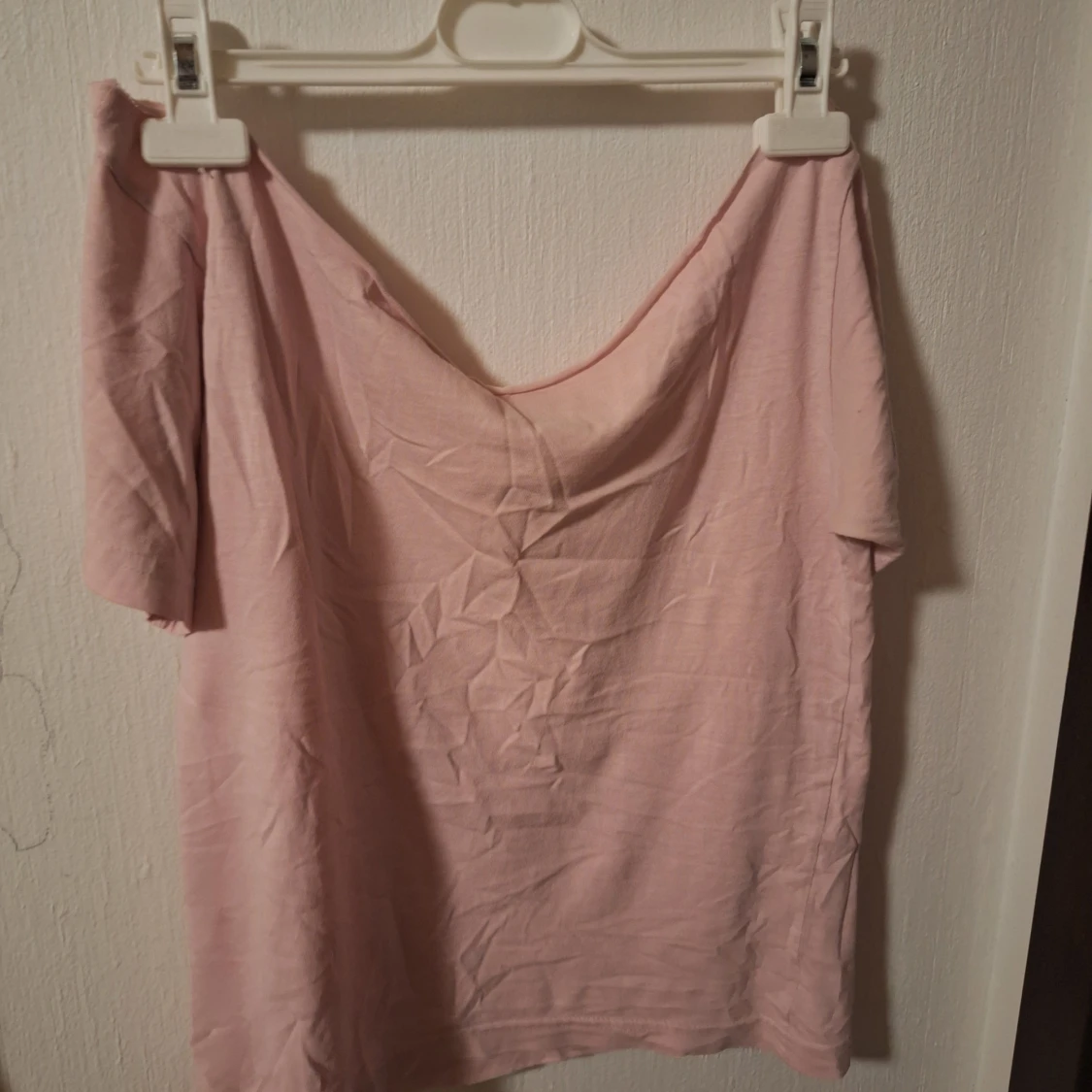 Säljer en ljusrosa offshoulder topp med korta ärmar. Toppen har en mjuk och avslappnad passform och är tillverkad i bomull. Perfekt för dig som gillar en enkel och feminin stil med lite extra edge tack vare den bara axeln. Har klippt av den själv men inget som märks. Kan skicka bättre bilder om så önskas🥰🫶