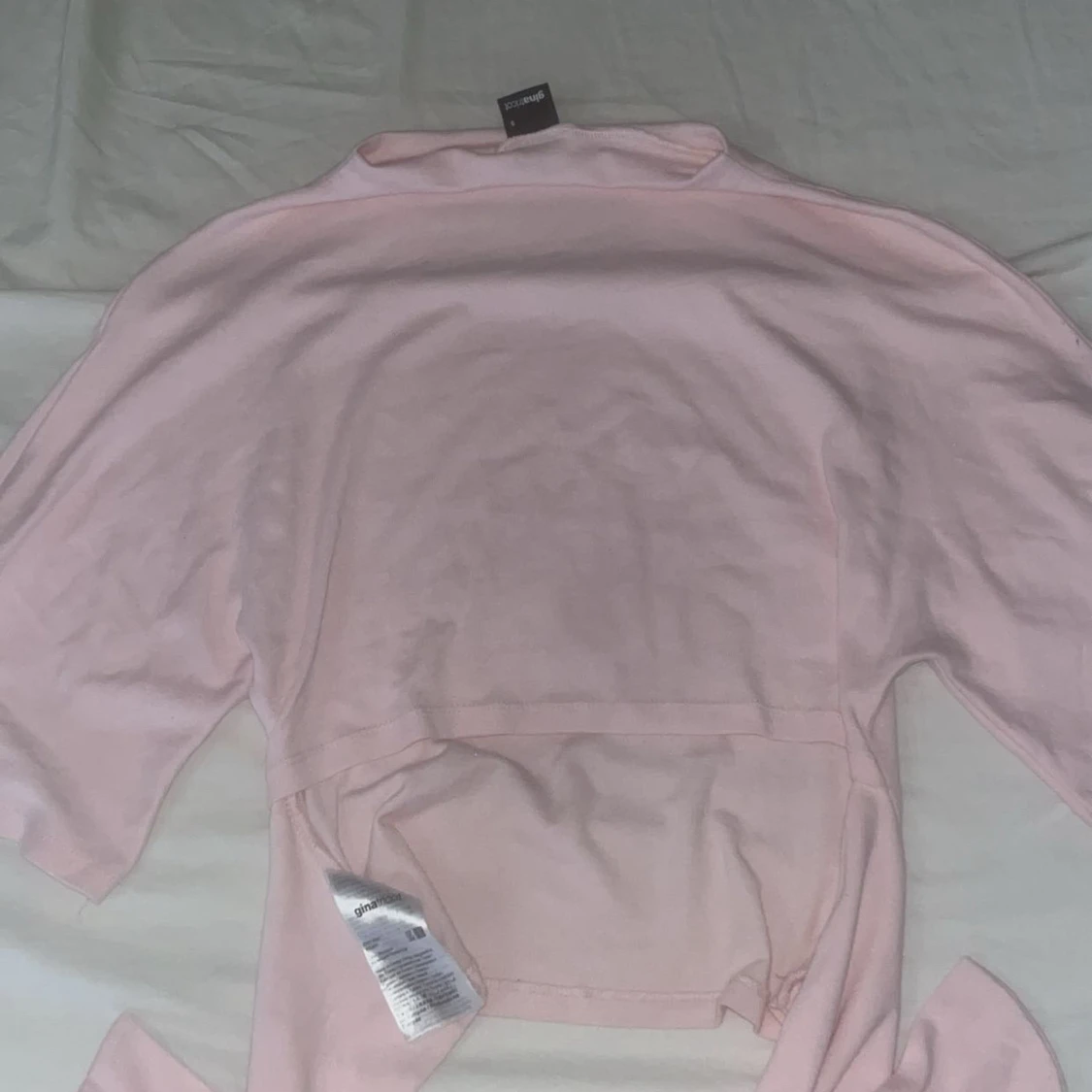 Supersöt ljusrosa topp från Gina Tricot med croppad passform och knyt i ryggen. Toppen har korta ärmar och är tillverkad i mjuk bomull. Perfekt för dig som gillar en feminin och trendig look med öppen rygg och snygg detalj med rosett.