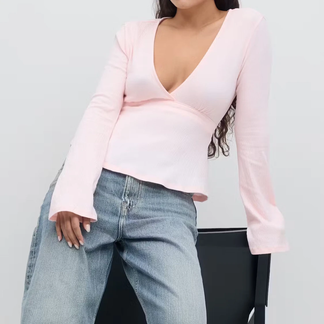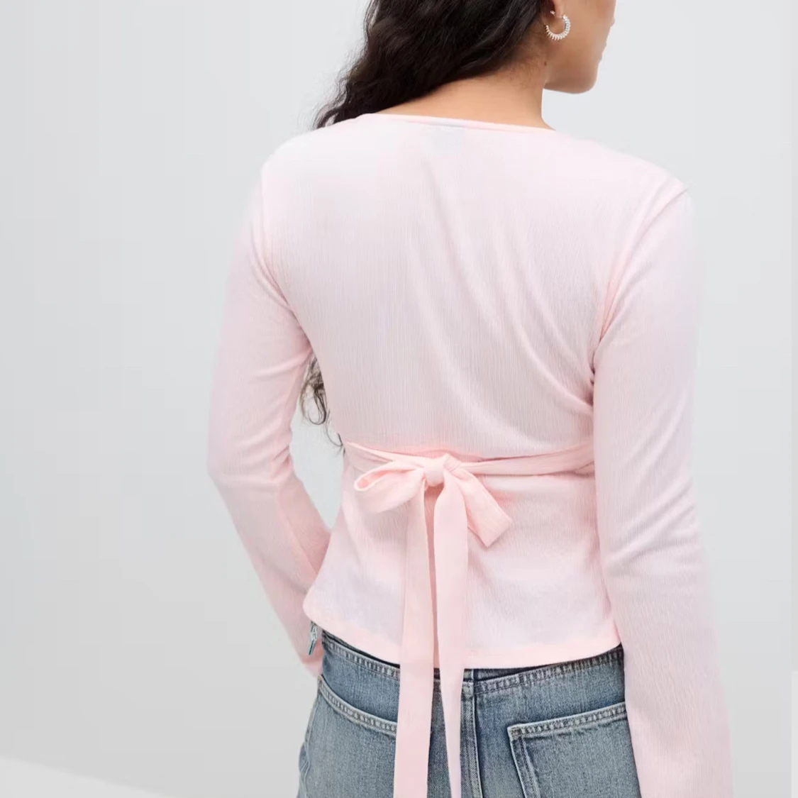 Supersöt ljusrosa omlottopp från Gina Tricot med v-ringning och långa ärmar. Toppen har knyt i midjan som ger en snygg look. Toppen är i nyskick, endast använd 2 gånger. PRIS KAN DISKUTERAS!💕