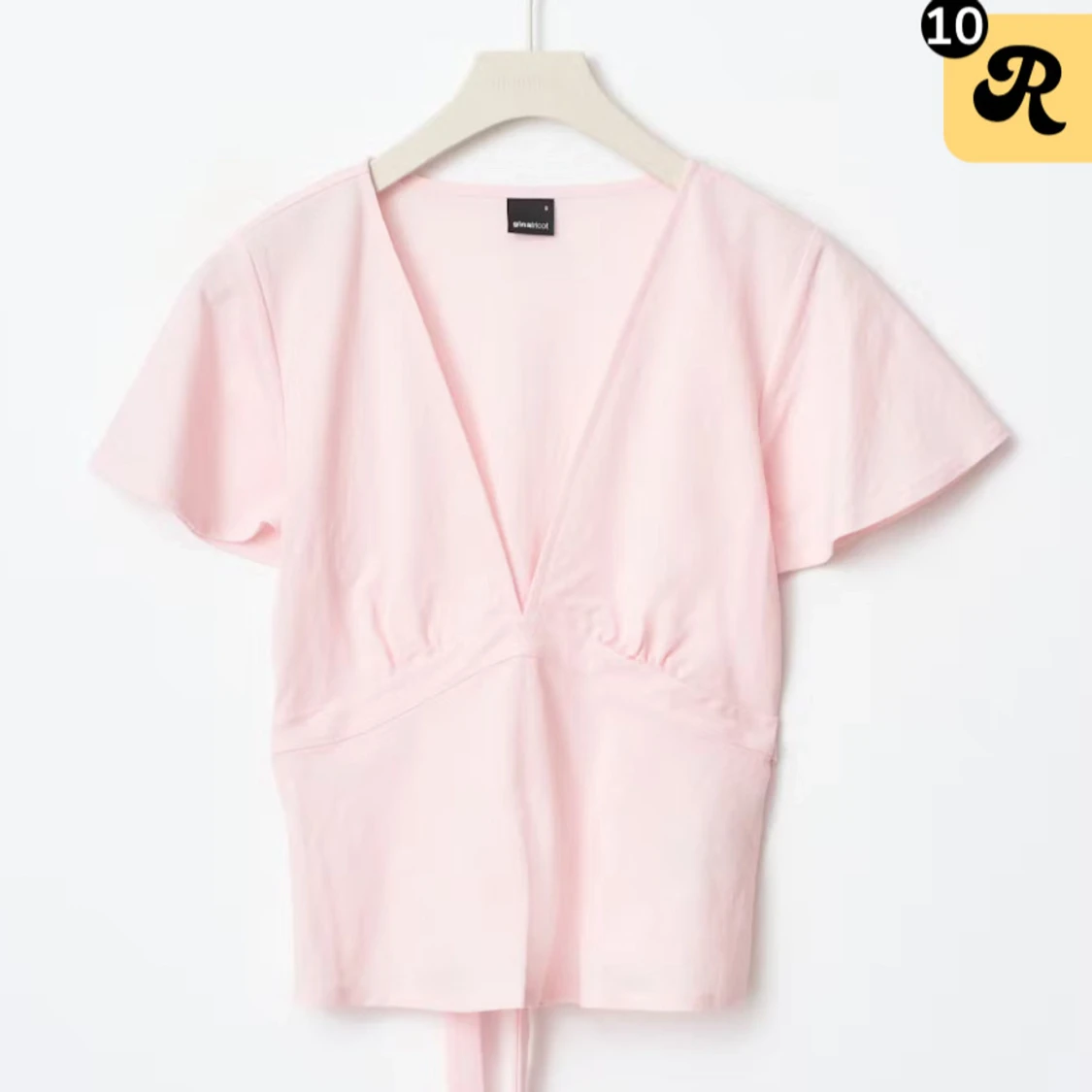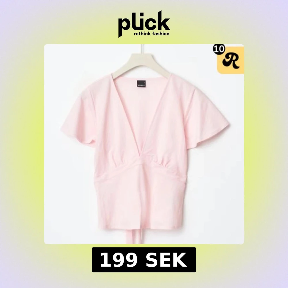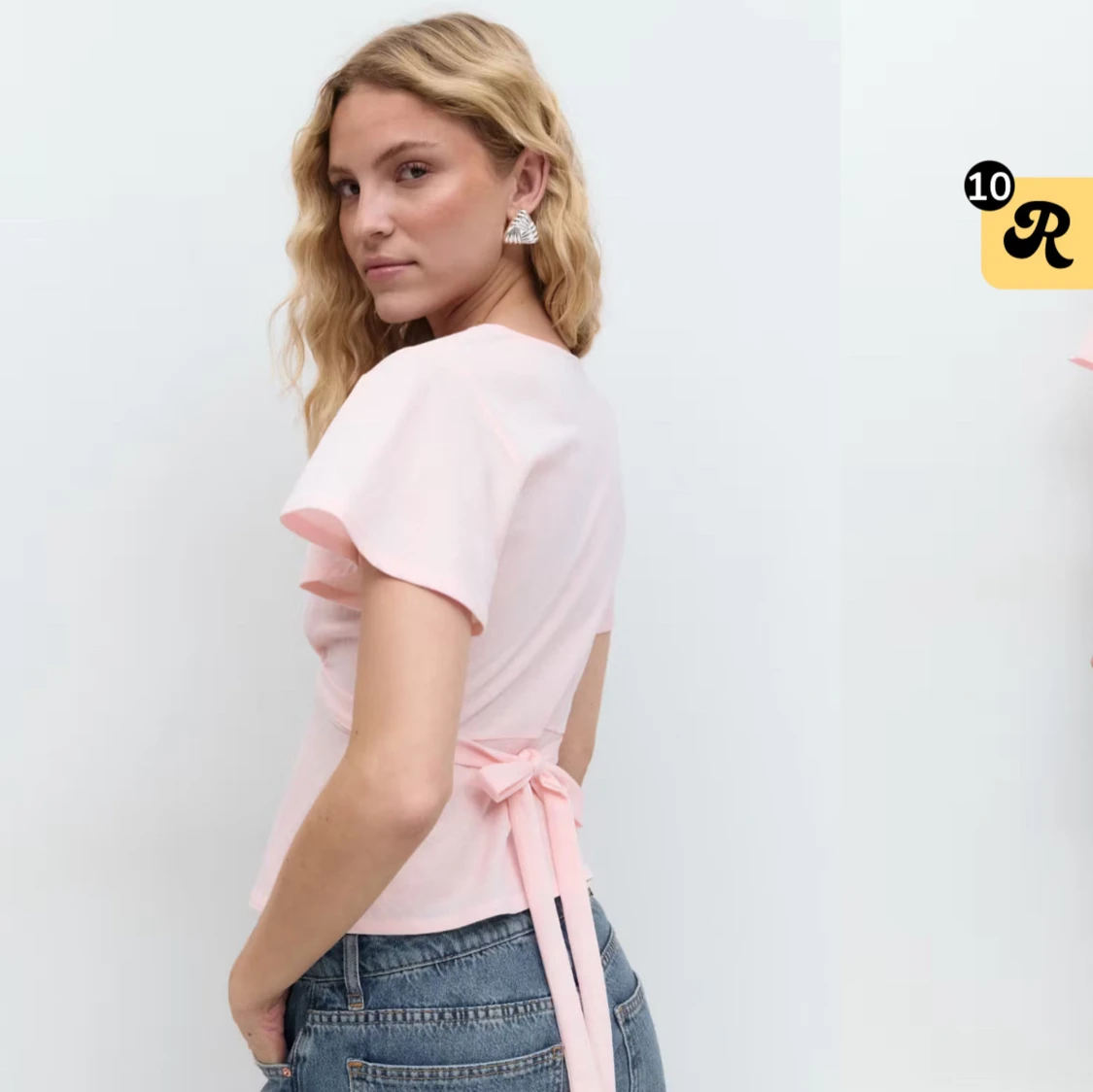 Supersöt ljusrosa omlottopp från Gina med v-ringning och korta ärmar. Toppen har ett knytband i midjan som ger en fin siluett. Perfekt att styla med jeans eller kjol för en fräsch look.