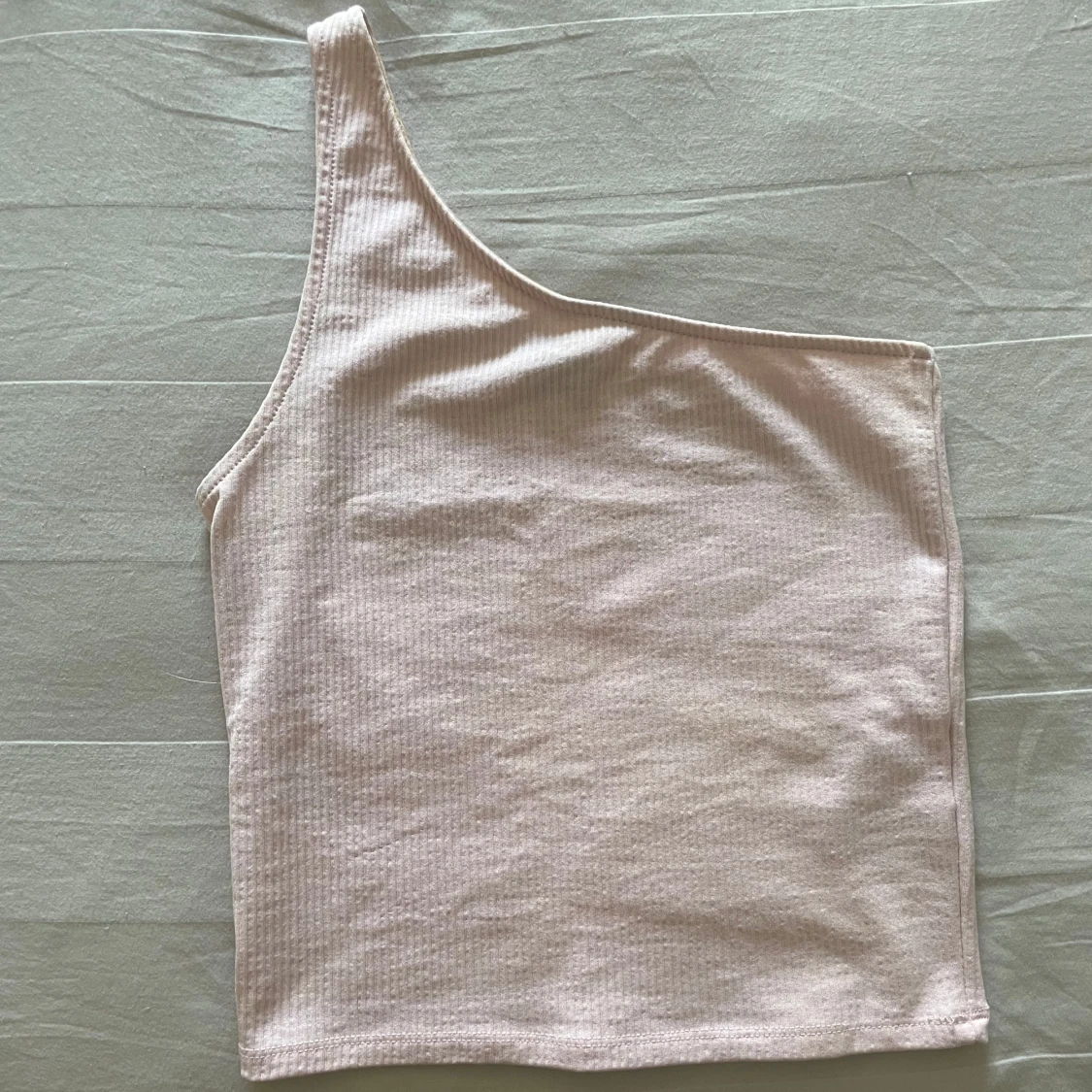 Supersöt ljusrosa ribbad topp från Gina Tricot i oneshoulder-modell. Tunt och stretchigt material, den är i storlek xs och i mycket bra skick.