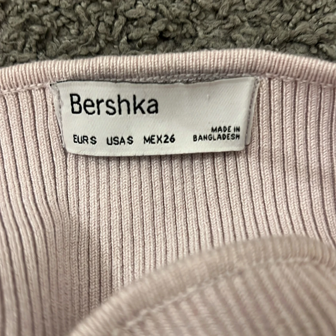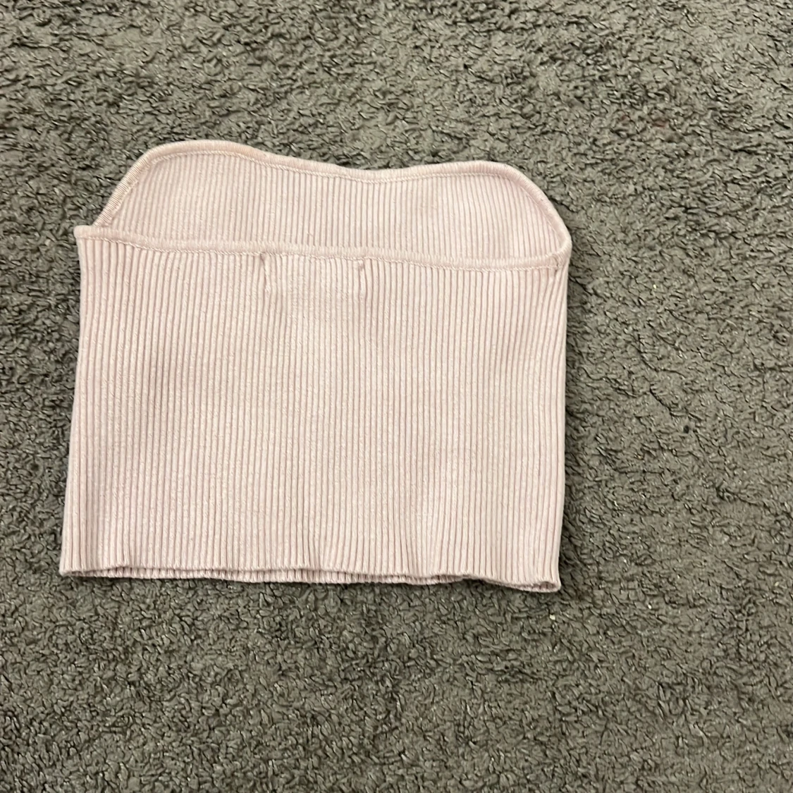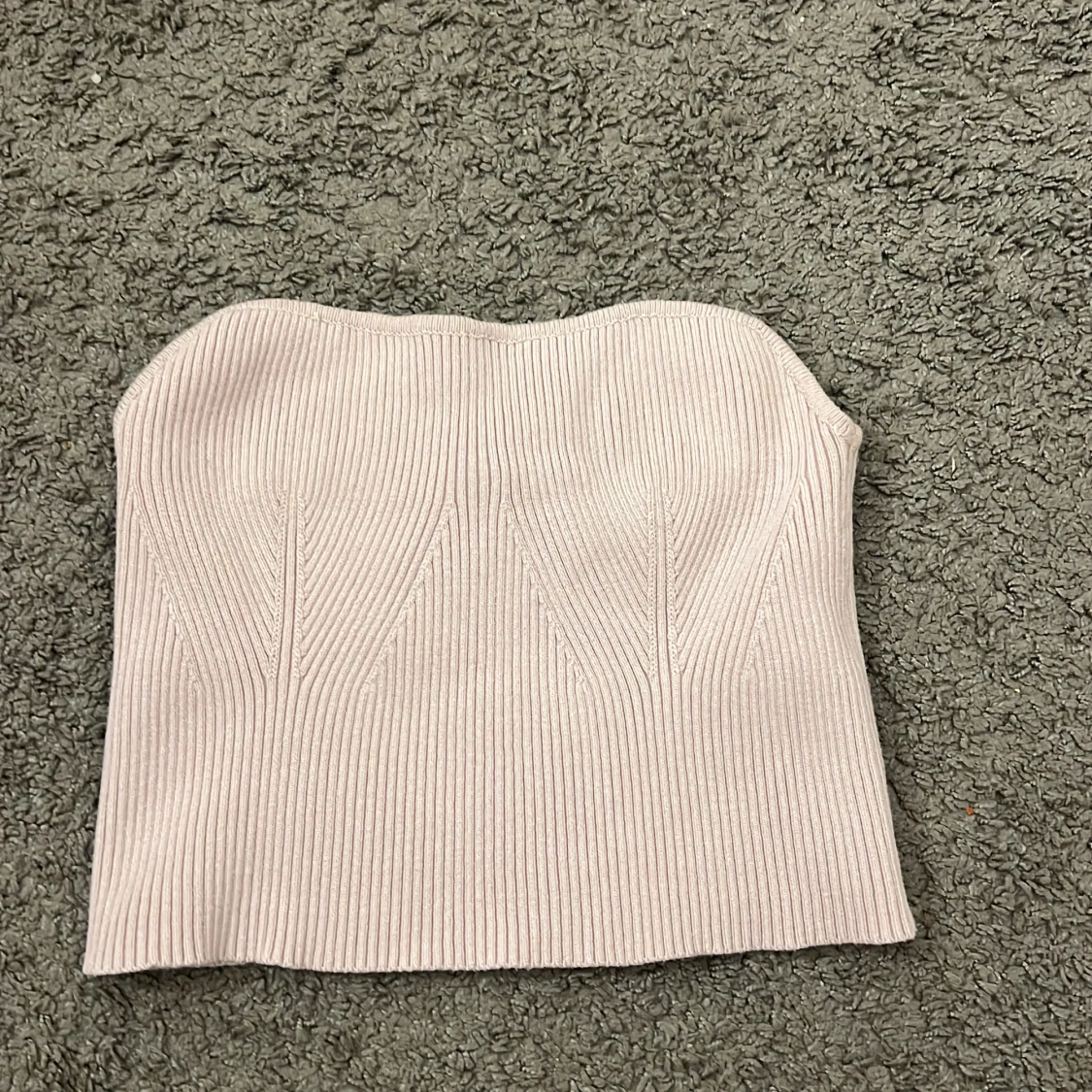 Säljer en ljusrosa ribbad tubtopp från Bershka. Toppen är bandeau-modell och har en snygg, tight passform med vertikala ribbade detaljer som ger en cool struktur. Perfekt att styla med jeans eller kjol för en trendig look.