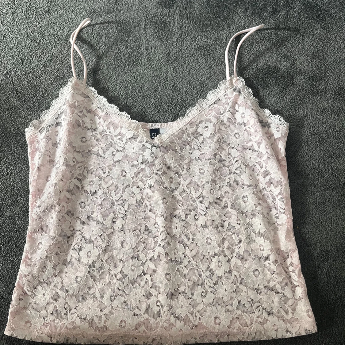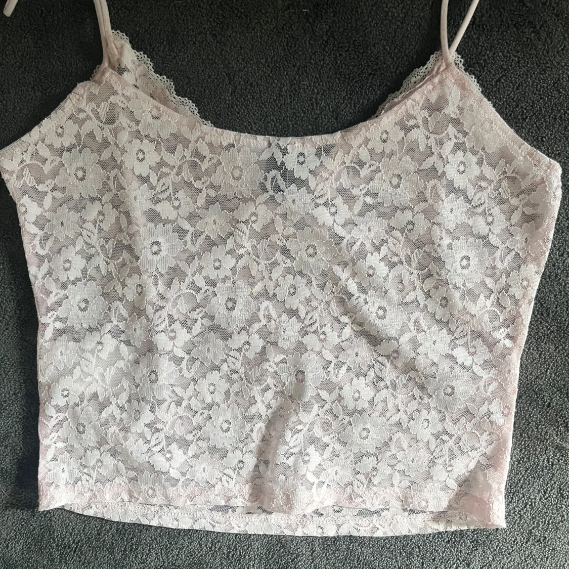 Supersött ljusrosa linne från Divided med tunna axelband och v-ringning. Hela toppen är täckt av blommig spets och har en feminin, romantisk vibe. Perfekt att styla med jeans eller kjol för en trendig look.