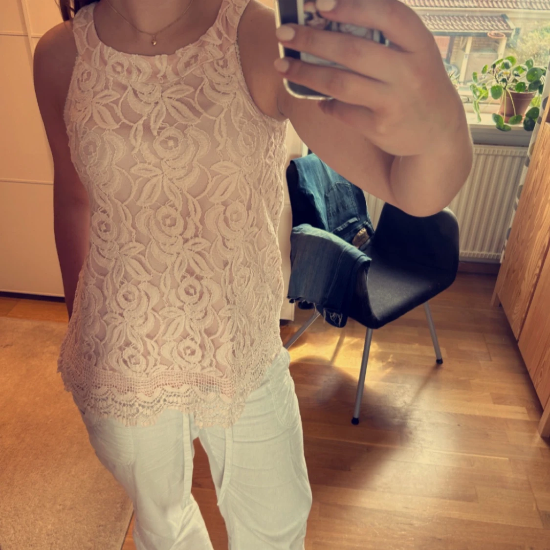 Supergulliga ljusrosa spetslinne i storlek L. Så söt i modellen och perfekt inför sommaren!! Inga defekter och har sällan använts!💕