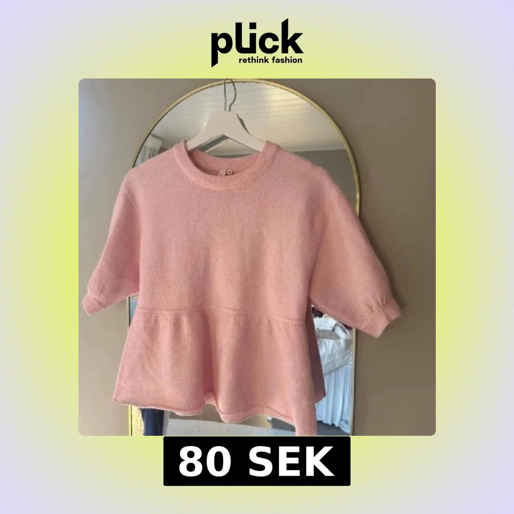 Superfin ljusrosa stickad topp från nelly i storlek XS. Modellen har korta ärmar, rund hals och en volangliknande söm nedtill som ger en söt och avslappnad vibe. Perfekt för dig som gillar mjuka material och pastellfärger.