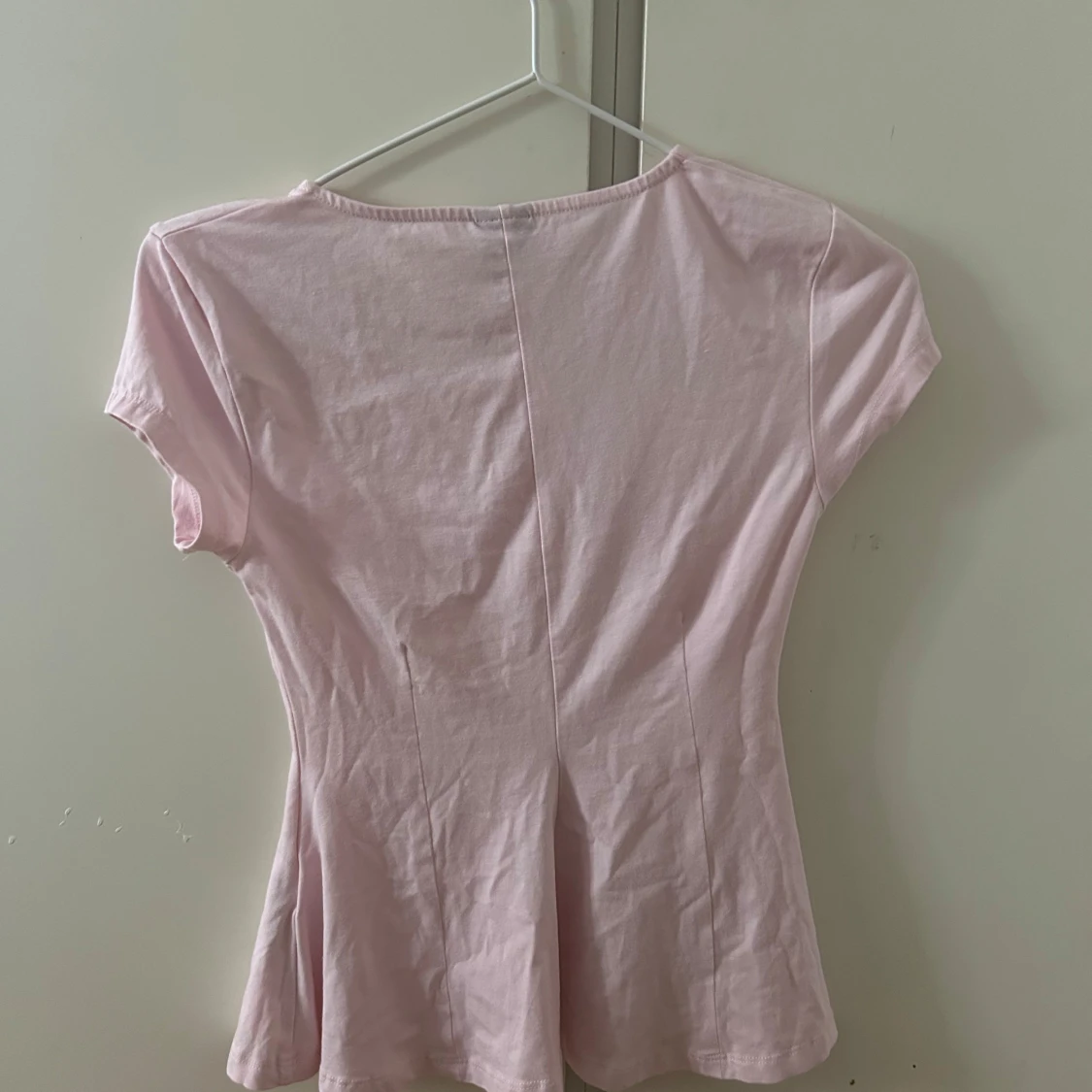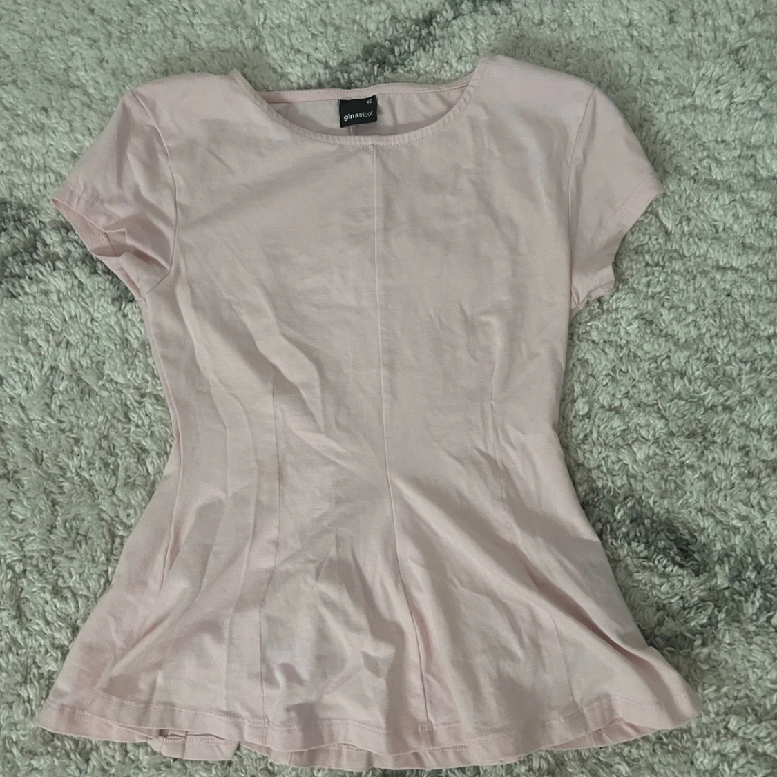 Supersöt ljusrosa topp från Gina Tricot i figurnära modell med korta ärmar och rund halsringning. Toppen har en lätt utsvängd nederdel och är tillverkad i mjuk bomull, perfekt för en fräsch och enkel look.