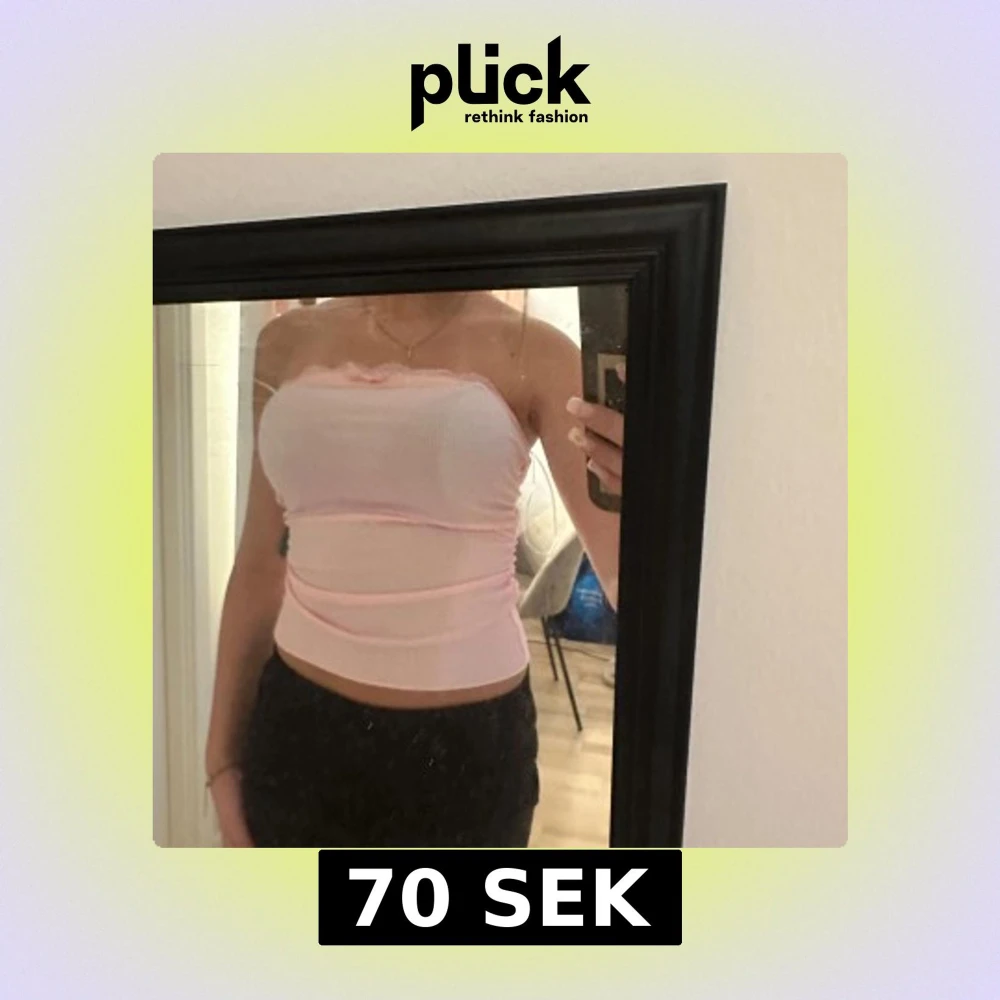 Säljer en ljusrosa tubtopp med lätt rynkdetalj upptill. Toppen är ärmlös och har en tight passform som sitter snyggt mot kroppen. Perfekt att styla till både jeans och kjol.