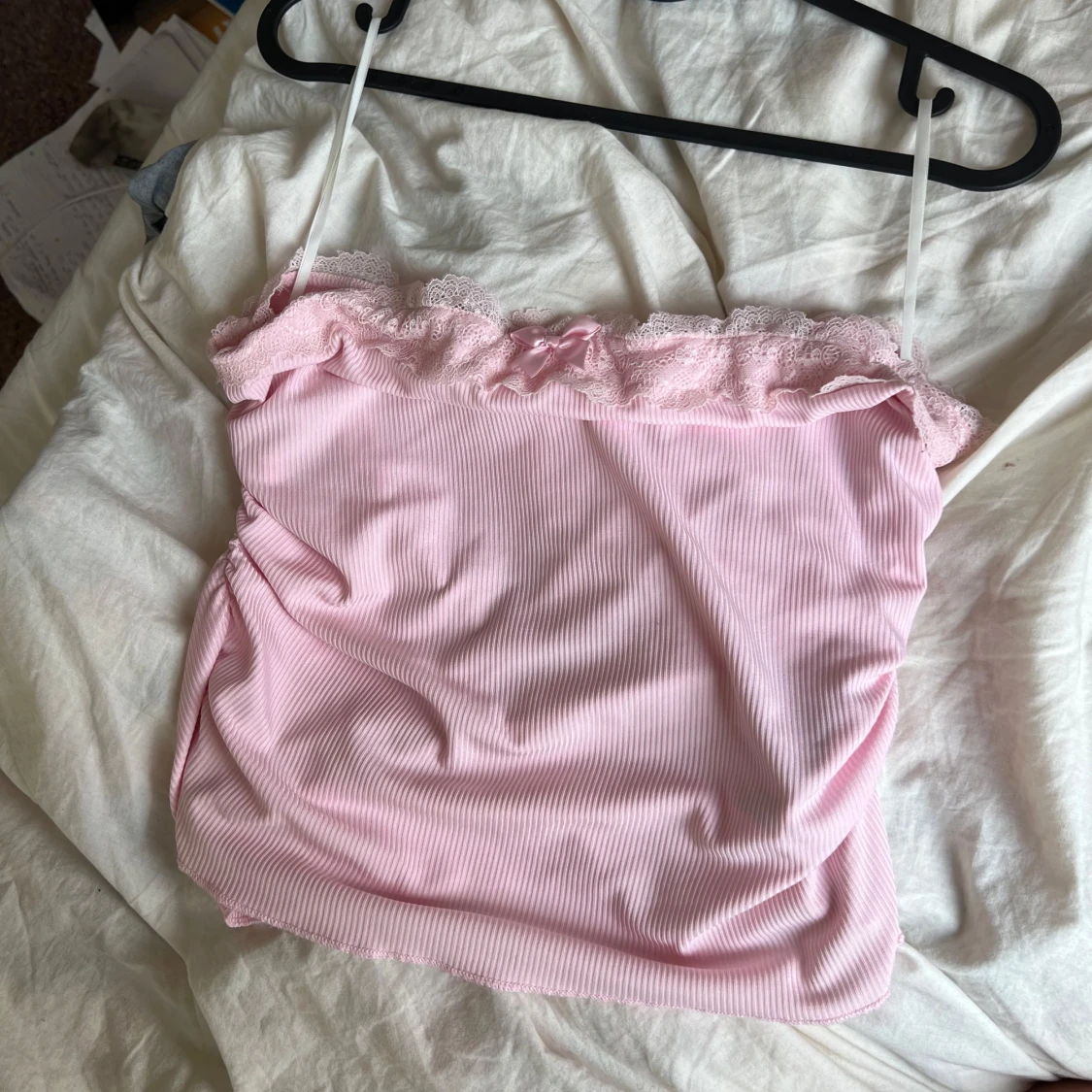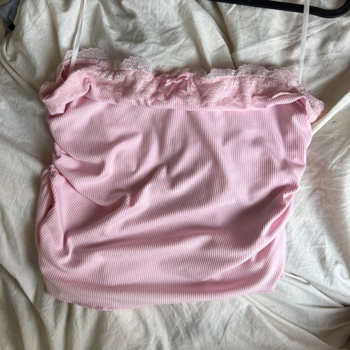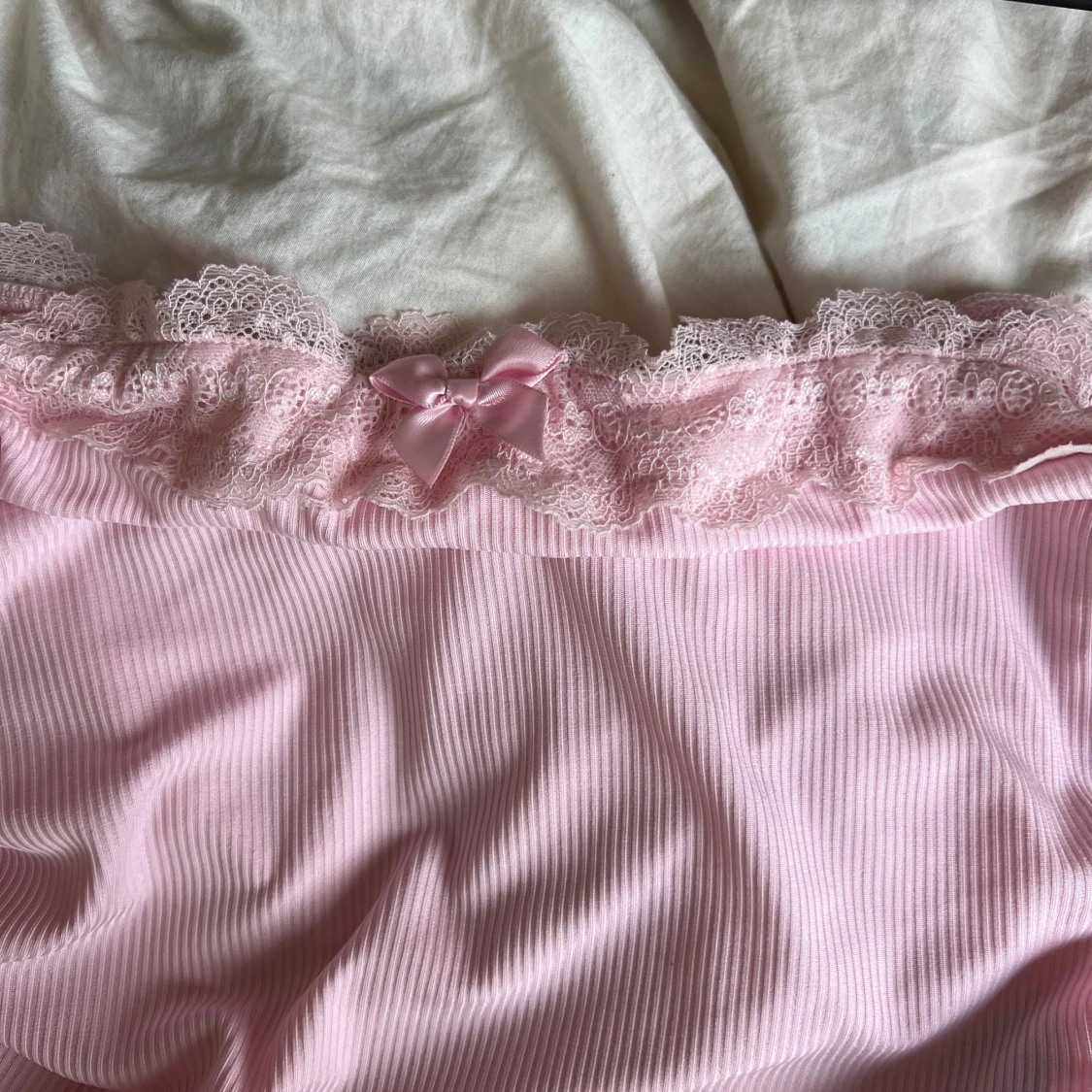 Supersöt ljusrosa tubtopp. En liten rosett framtill ger extra gullig touch. Perfekt för varma dagar eller som layering-piece. Storlek L från SHEIN men passar både M och L skulle jag säga.