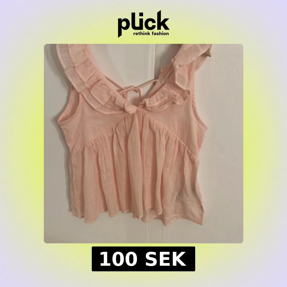 Supersöt ljusrosa blus med volangdetaljer runt urringningen och knyt i ryggen. Blusen är ärmlös och har en luftig, flowy passform som känns riktigt somrig. Strl 152