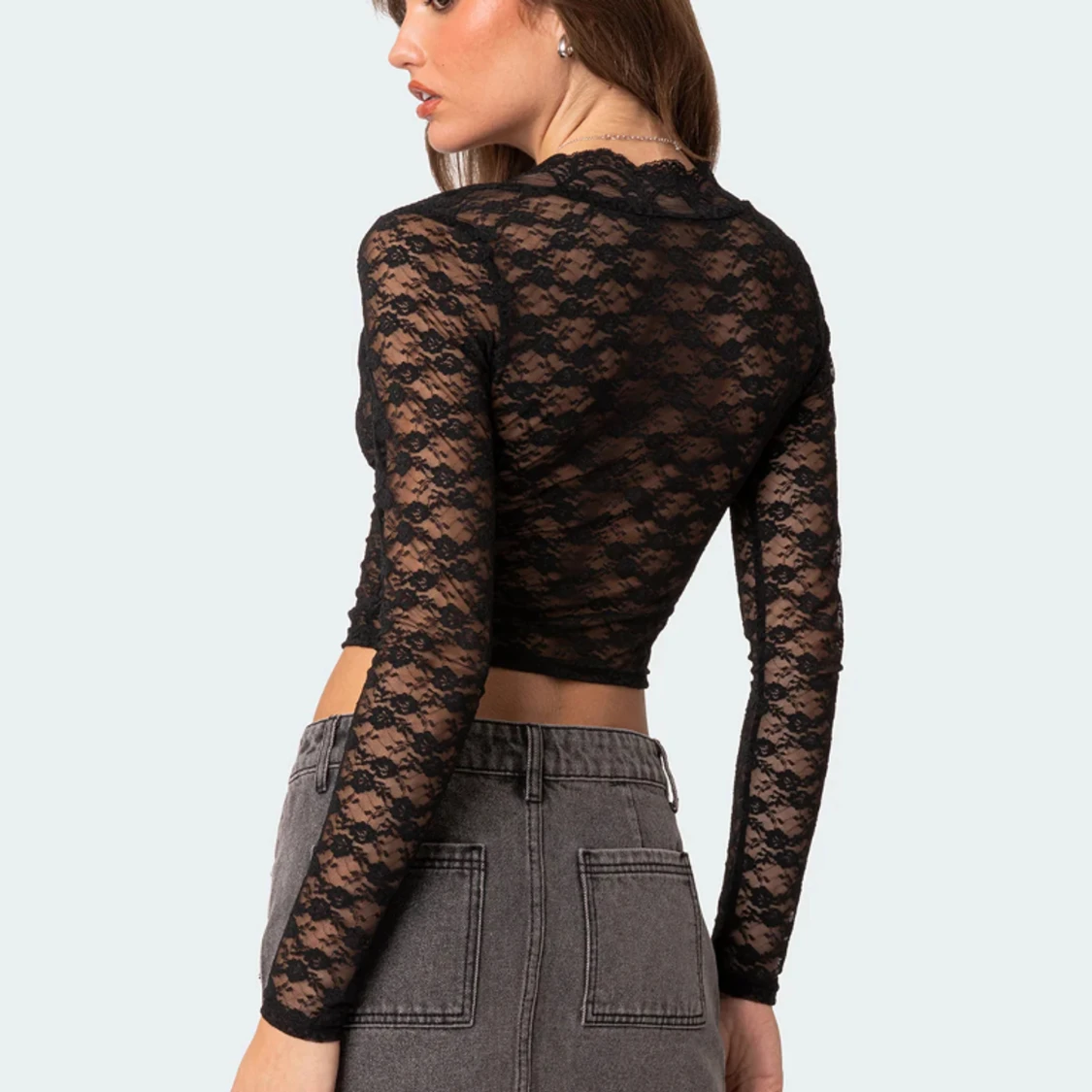 Helt ny sheer lace top från edikted! Väldigt populärt med spets!!🤍Skriv vid funderingar!!