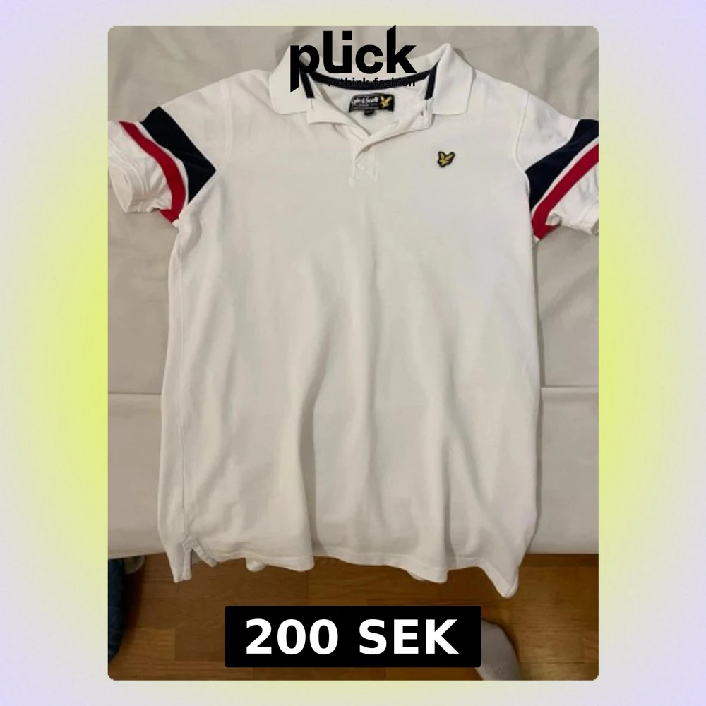 Säljer en vit pikétröja från Lyle & Scott med klassisk krage och knappar. Pågrund av att den blivit för liten. Storleken är 14/15 år men passar som en xs. Tröjan har marinblå och röda detaljer på ärmarna samt den ikoniska gula loggan på bröstet. Tillverkad i mjuk bomull och har en normal passform. Perfekt till sommaren!