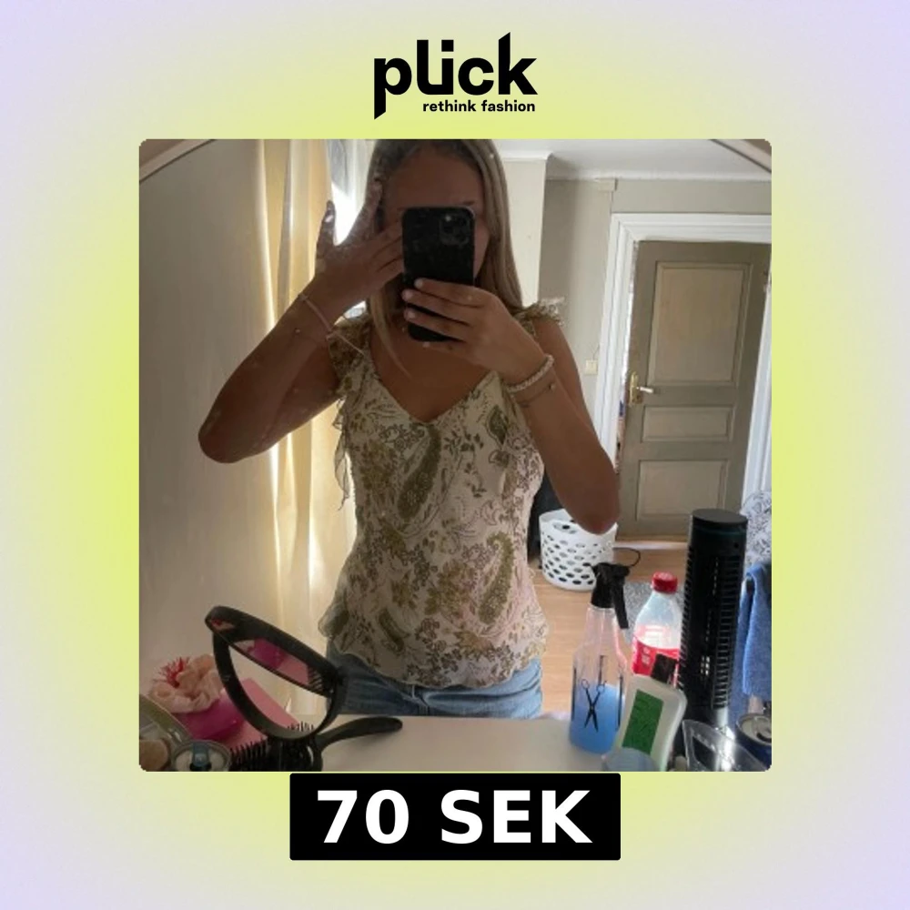 Supersöt linnetopp från Saint Tropez i vitt med blommigt mönster i grönt och beige. Toppen har volangiga axelband, v-ringning och lätt figursydd passform. Perfekt för varma dagar och ger en romantisk vibe till din outfit. Det är en M men passar även S