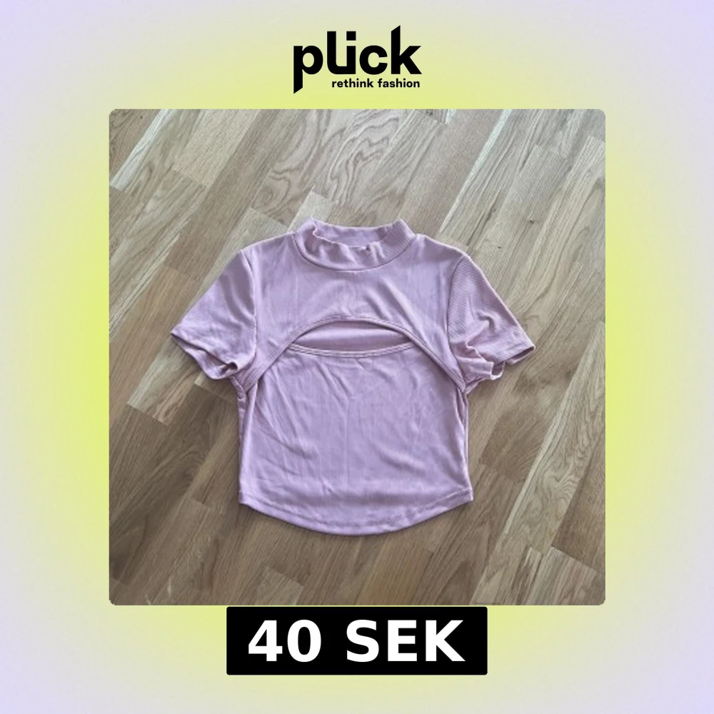 Säljer en söt rosa randig topp med korta ärmar och en unik design med öppning framtill. Perfekt för en trendig look.