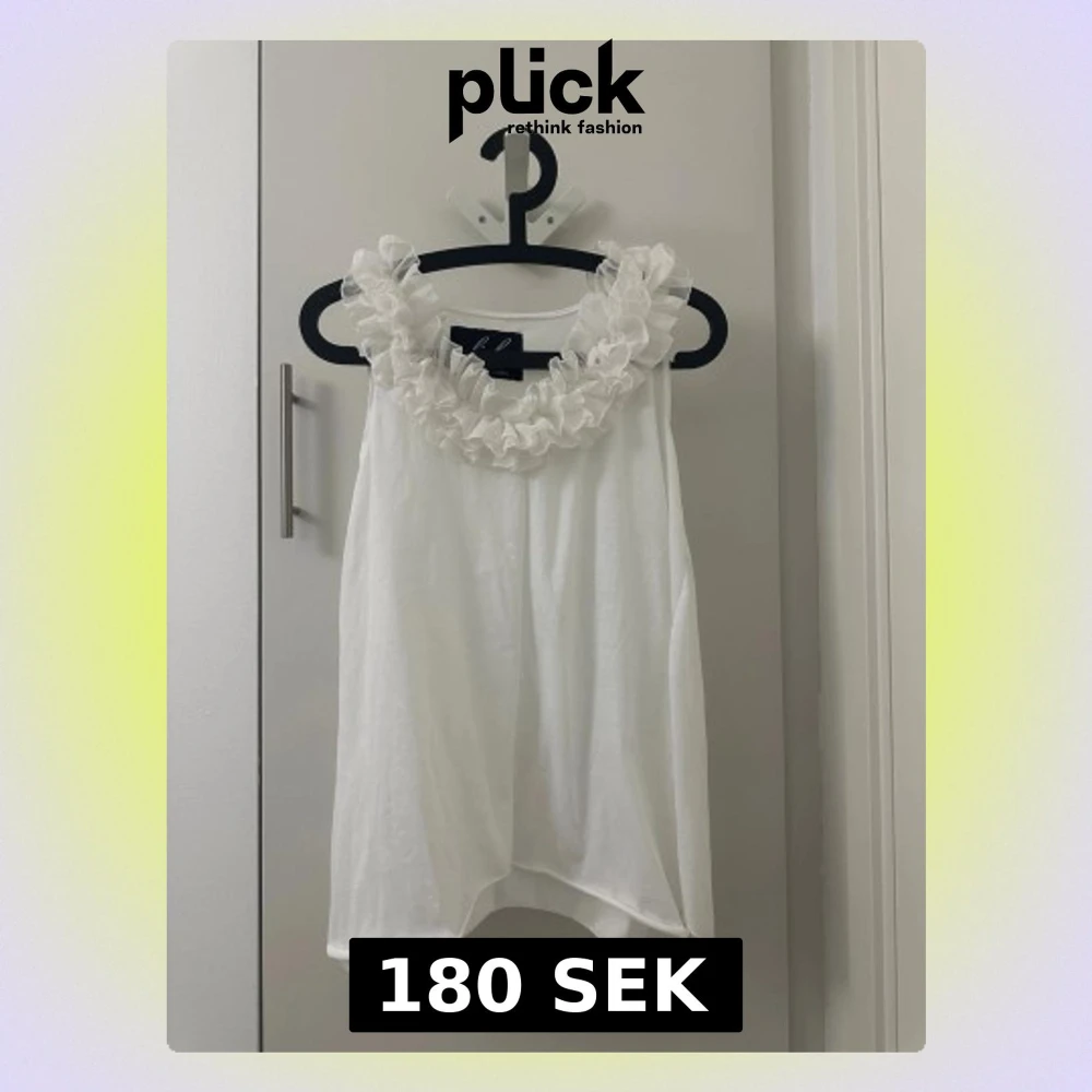Supersöt vit ärmlös topp från B.P. Original med en stor volangkrage i transparent tyg runt halsen. Toppen är lätt och luftig, perfekt för varma dagar eller när du vill ha något extra gulligt. Materialet känns mjukt och bekvämt mot huden.