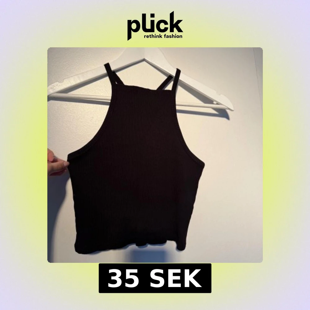 Svart ribbad halterneck top från Gina storlek m. Vita trådarna i nacken är från lappen på insidan