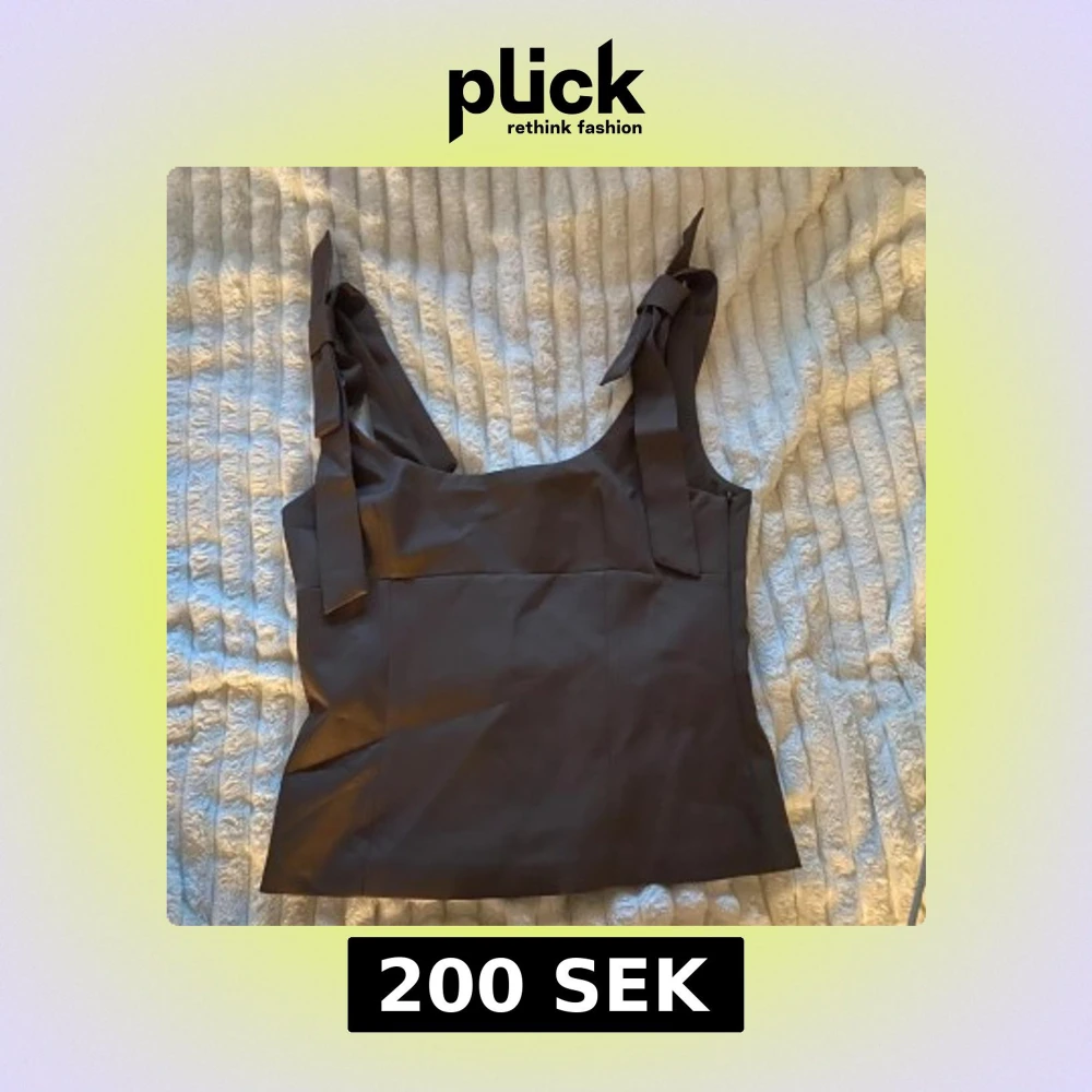 Snygg brun linnetopp med breda axelband som knyts till rosetter på axlarna. Toppen har en rak och något figurnära passform med slät yta och stilren design. Perfekt för dig som gillar enkla men trendiga plagg med fina detaljer. De storlek L på den men de skulle mer vara M. Jag har aldrig använt den