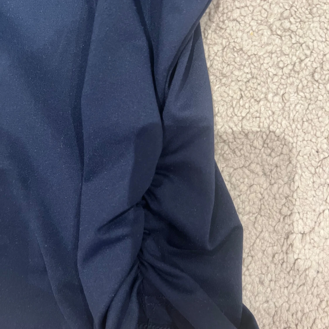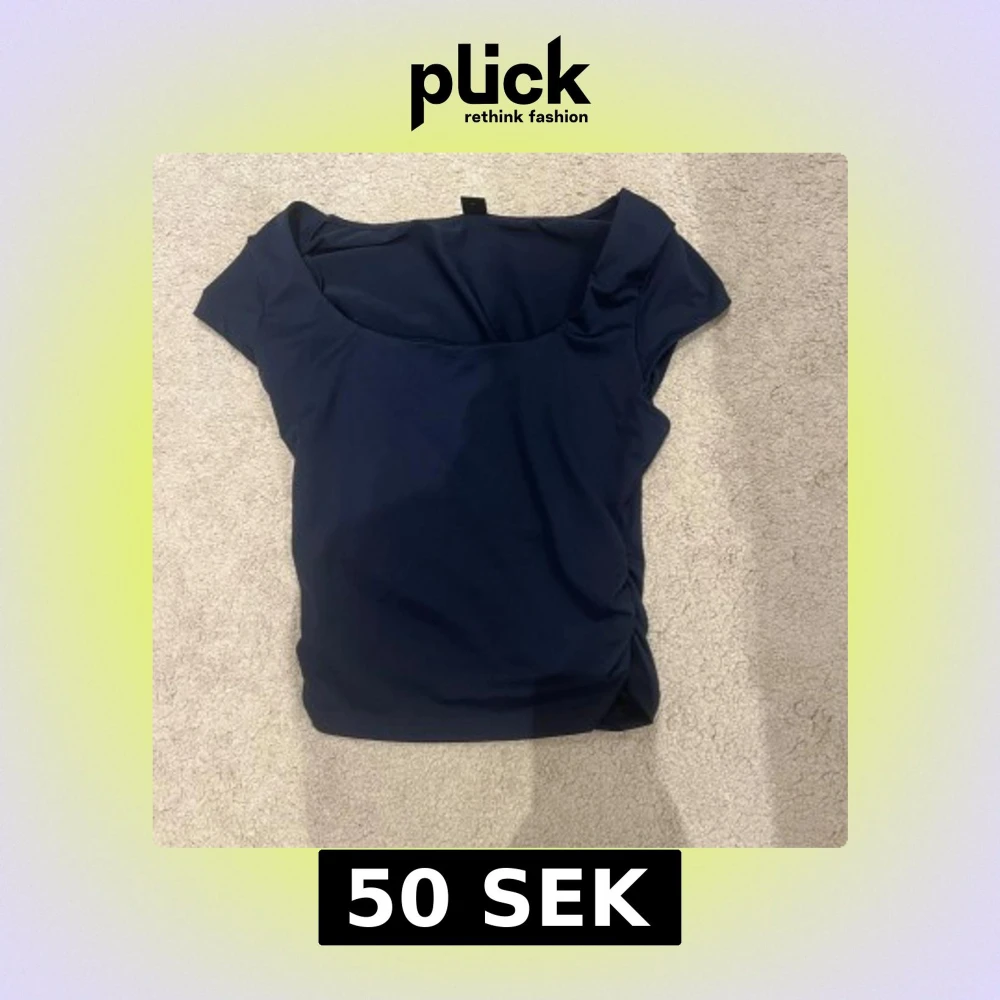 Snygg mörkblå topp med korta ärmar och en rundad halsringning. Perfekt för en stilren look. Materialet är mjukt och stretchigt för en bekväm passform.