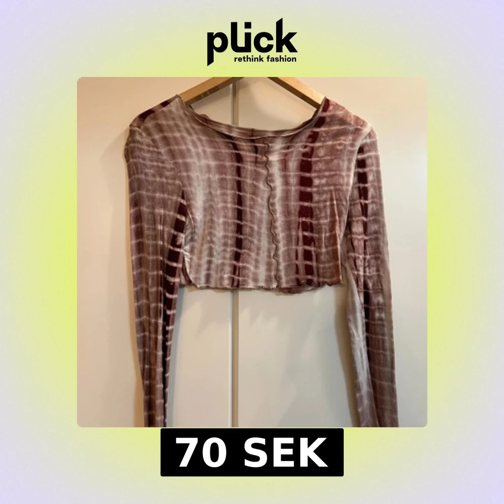 Säljer en brun- och vitrandig croppad topp med långa ärmar. Toppen har ett unikt mönster och är perfekt för en trendig look. Den är tillverkad i ett mjukt och bekvämt material. Med byxorna.