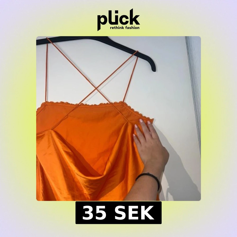 Superfin orange topp i satin med tunna axelband som korsas i ryggen. Toppen har spetsdetaljer längs urringningen och en snygg drapering framtill. Perfekt för dig som vill sticka ut med färg och coola detaljer. Passar s-l
