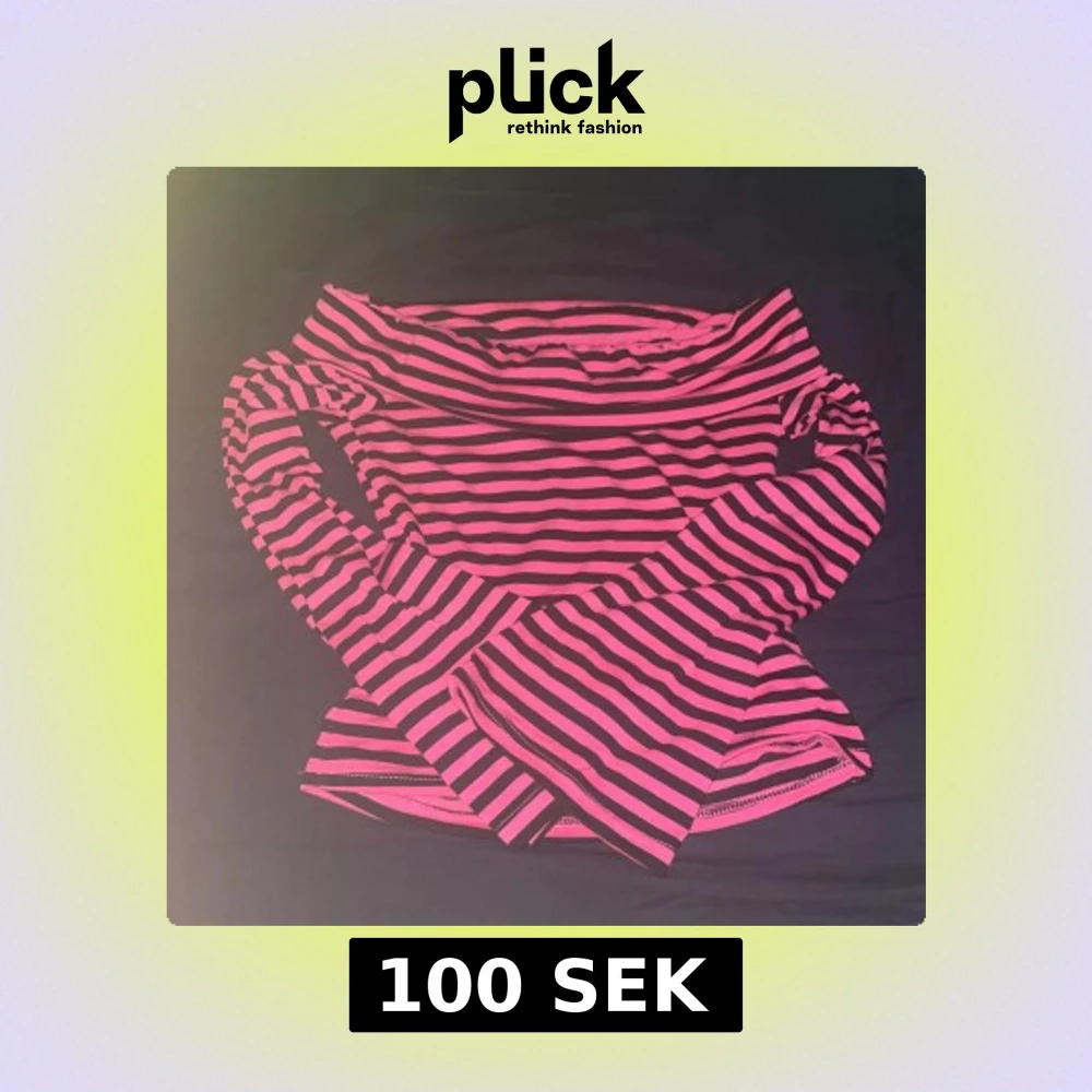 Snygg rosa och svart randig offshoulder topp med långa ärmar. Perfekt för en trendig look. Passar bra till både jeans och kjol.