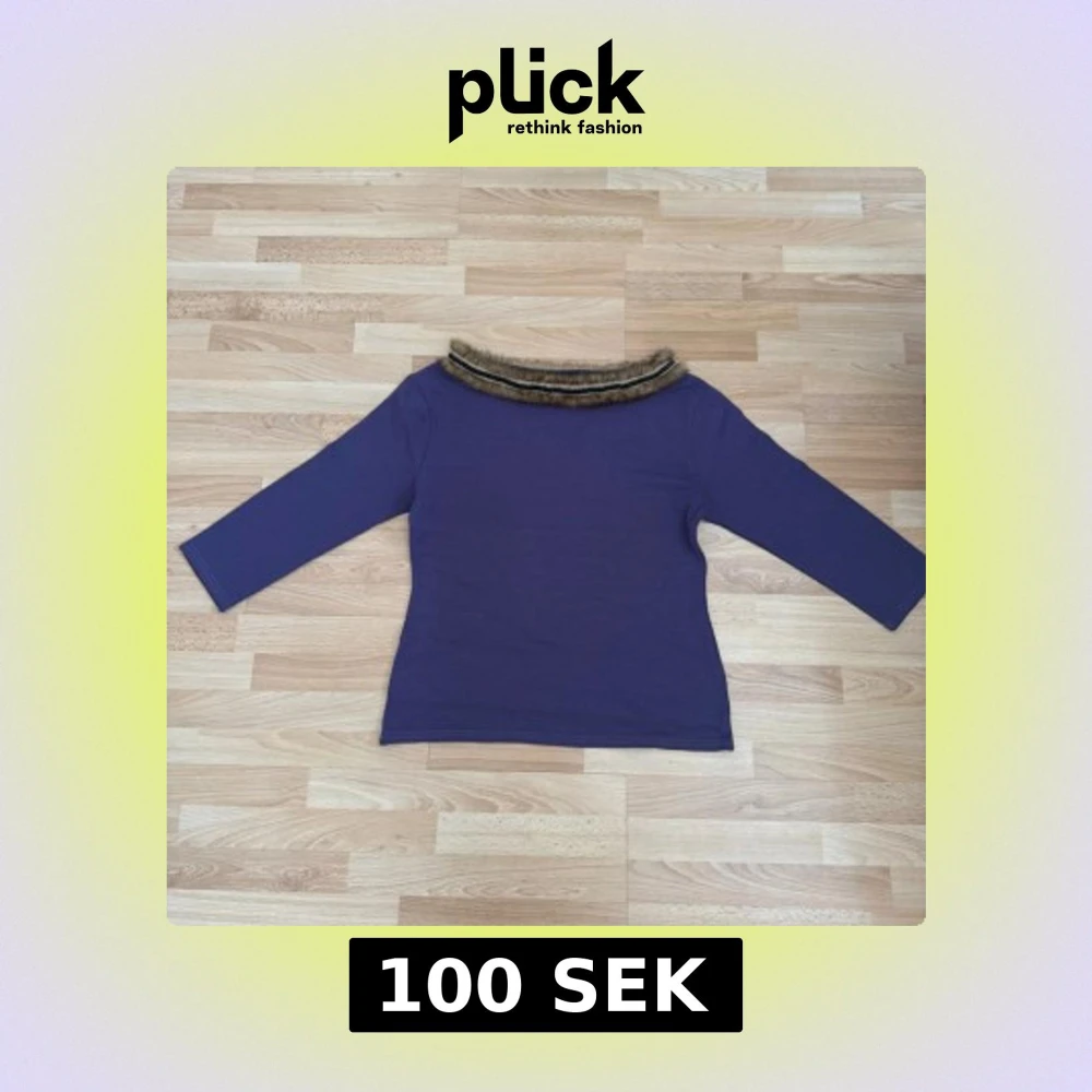 Trendig lila topp med trekvartsärm och en unik krage dekorerad med brun fuskpäls. Toppen har en rak passform och är perfekt för dig som vill sticka ut med en cool detalj. Materialet känns mjukt och stretchigt. Storlek xl men förminskad som m, bröst 100-104cm.