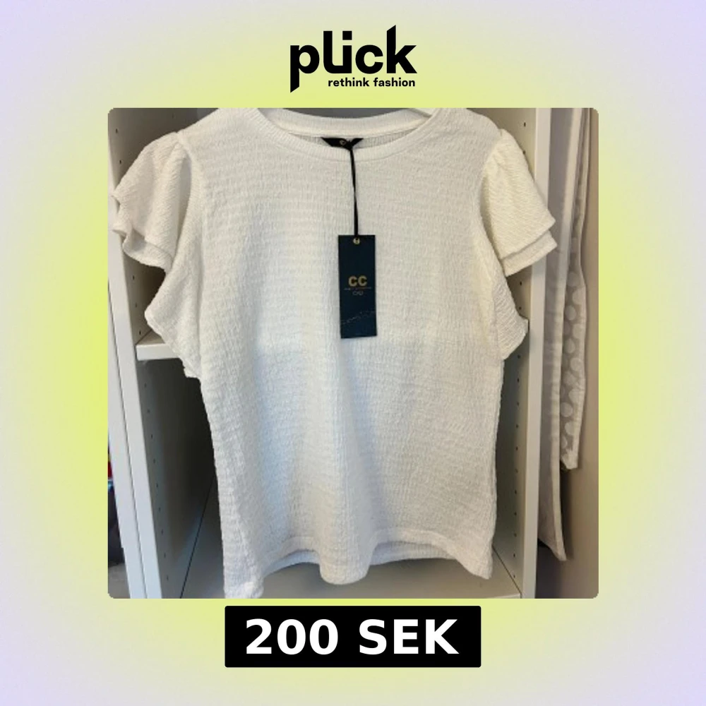 Supersöt vit blus från Capri Collection med korta volangärmar och strukturerat tyg. Helt ny med lapp kvar som jag själv skrivit nytt pris på lappen på. Blusen har rund halsringning och en luftig passform som känns både trendig och bekväm. Perfekt för dig som gillar en stilren look med det lilla extra.