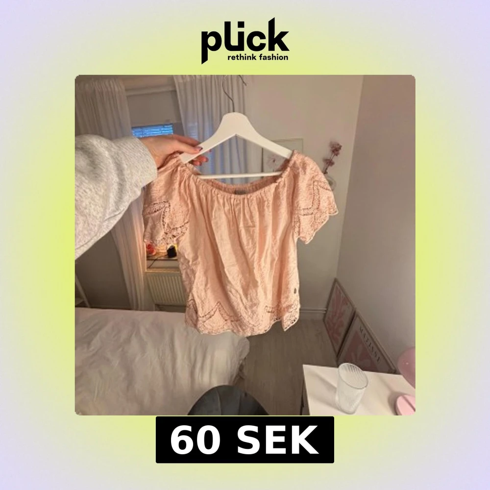 Säljer en söt ljusrosa blus med offshoulder och korta ärmar. Blusen har fina spetsdetaljer längs ärmar och nederkant samt broderade mönster. Luftig och skön i bomull.🌸