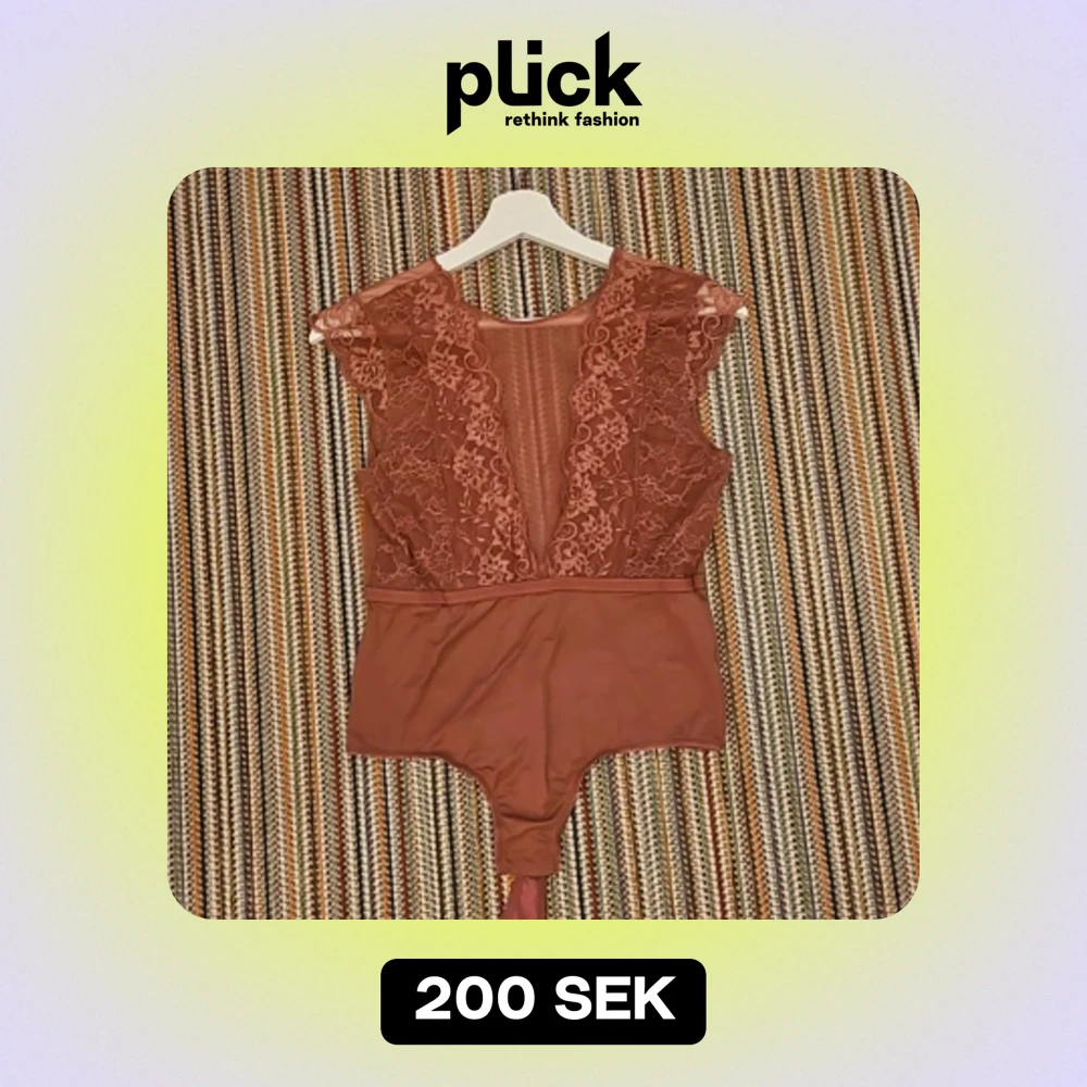 En body med spets framför brösten och genomskinligt tyg mellan. Ryggen har en v öppning.
