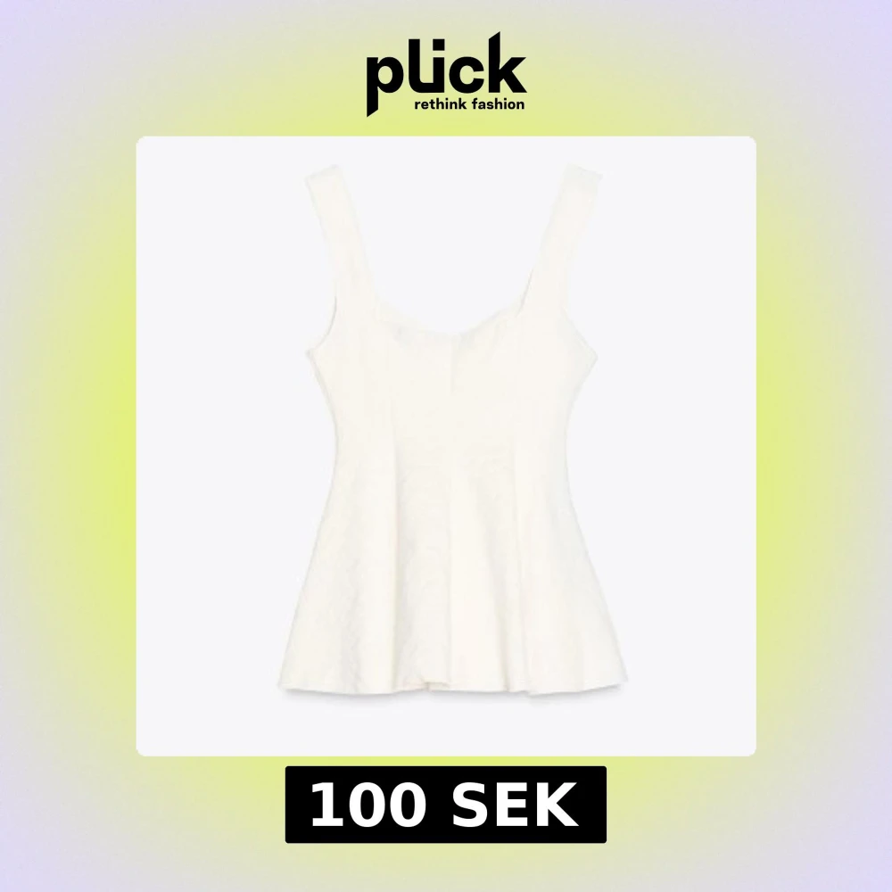 Supersnygg vit linnetopp med breda axelband och markerad midja. Toppen har en lätt utsvängd peplumform och ett subtilt strukturerat tyg som ger en cool känsla. Perfekt att styla med jeans eller kjol för en fräsch look.