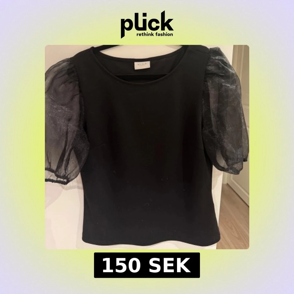 Fin svart blus med genomskinliga puffĂ€rmarđ