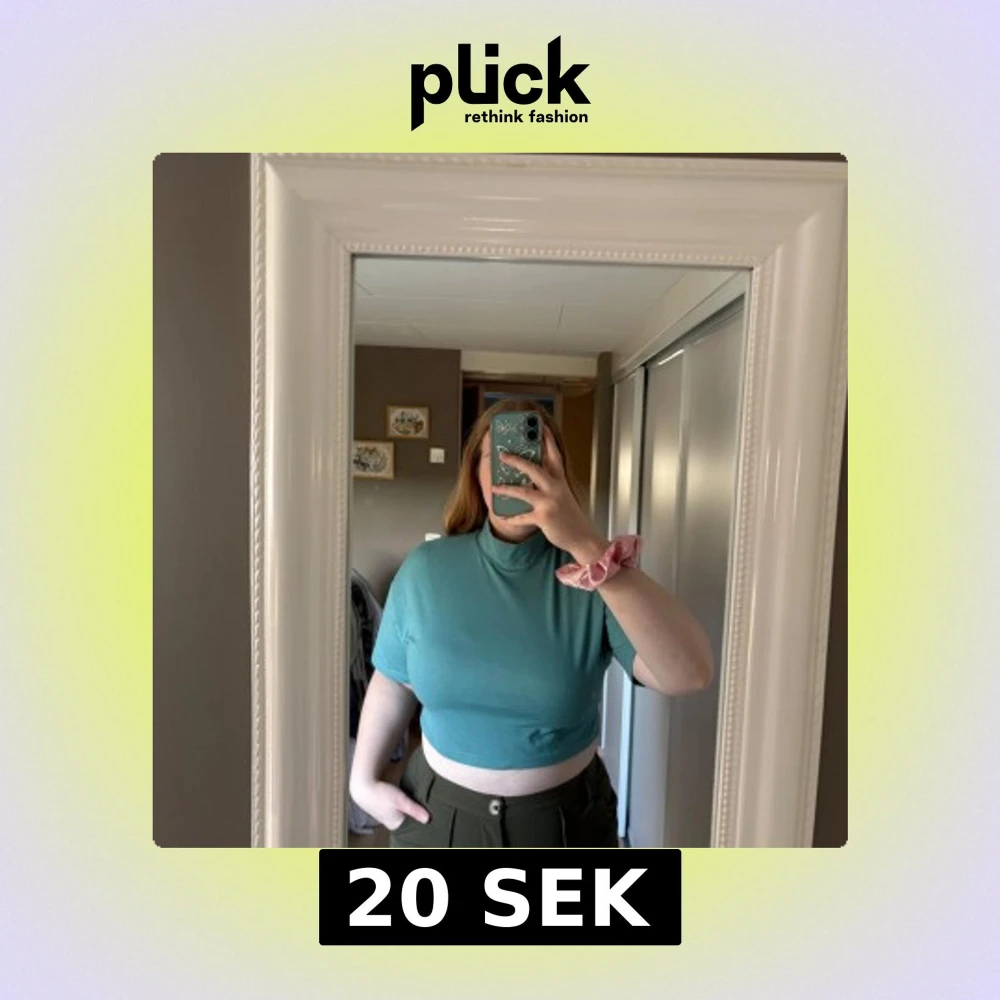 Säljer en turkos croppad polotopp från SHEIN. Toppen har korta ärmar och en hög krage som ger en clean och modern vibe. Perfekt att styla med höga byxor eller kjol för en trendig look.