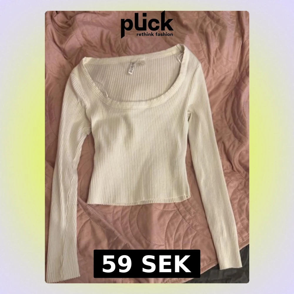 Säljer en ribbad topp i vit färg från H&M Toppen har lång ärm och rundad halsringning.