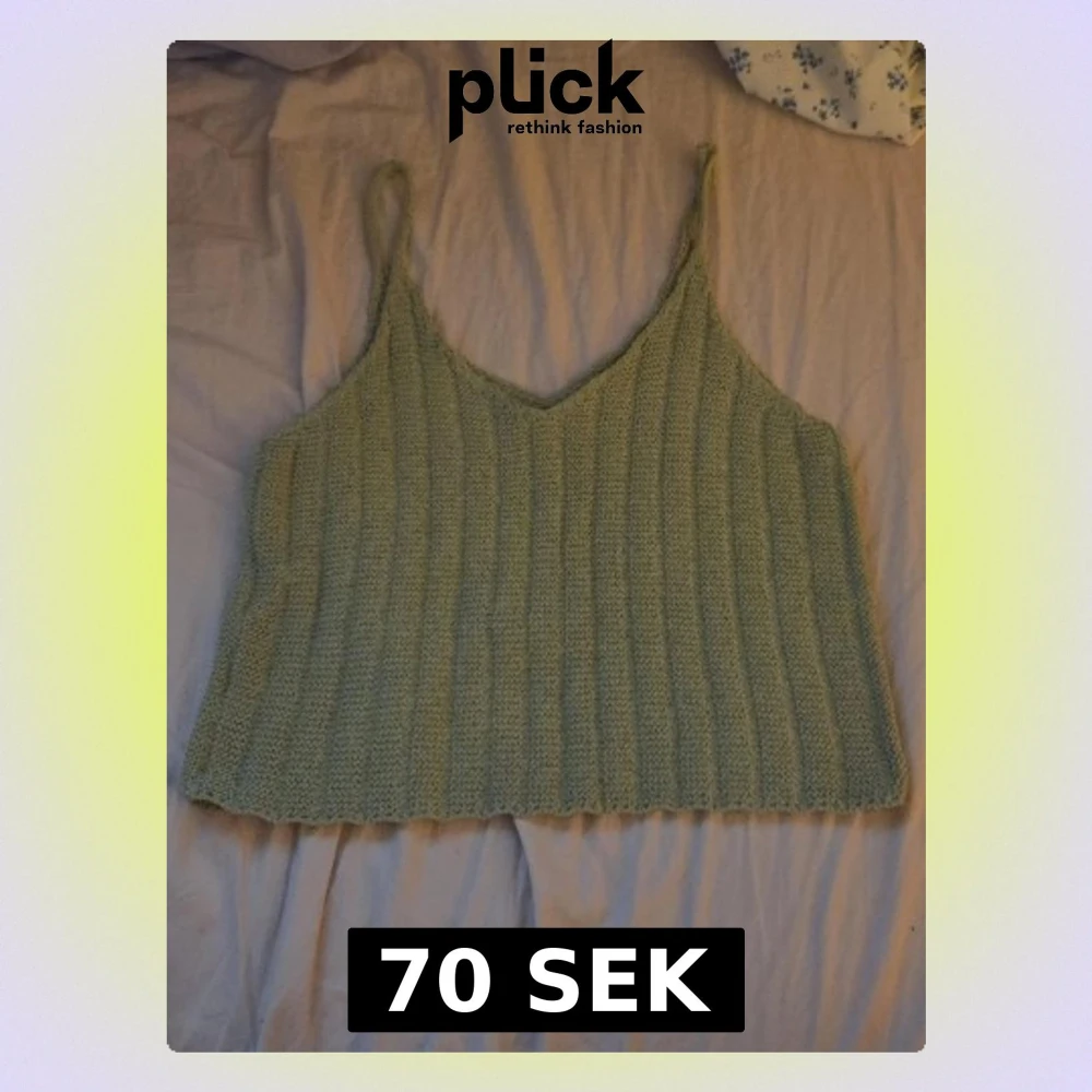 Säljer ett ljusgrönt stickat linne från Lofty Style i storlek M. Linnet har smala axelband, v-ringning och är ribbstickat för en snygg struktur. Perfekt för dig som gillar en avslappnad och trendig look. Den har samma form fram och bak