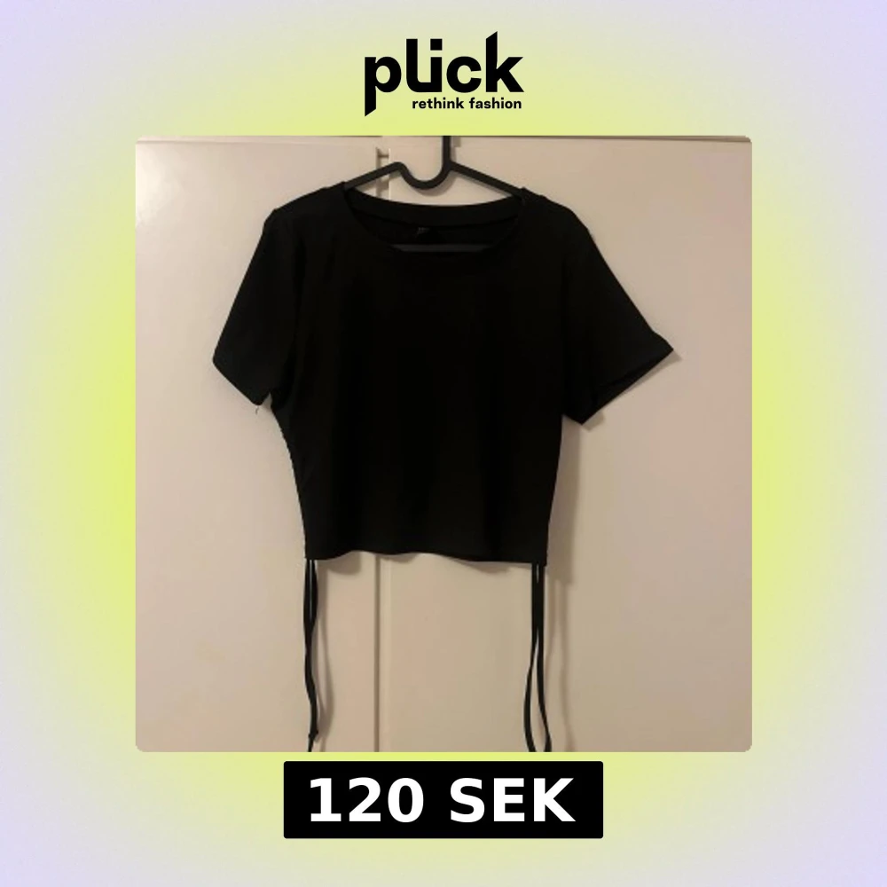Säljer en stilren svart topp med korta ärmar och knytband i sidorna. Perfekt för en trendig look. Passar bra till både jeans och kjol.