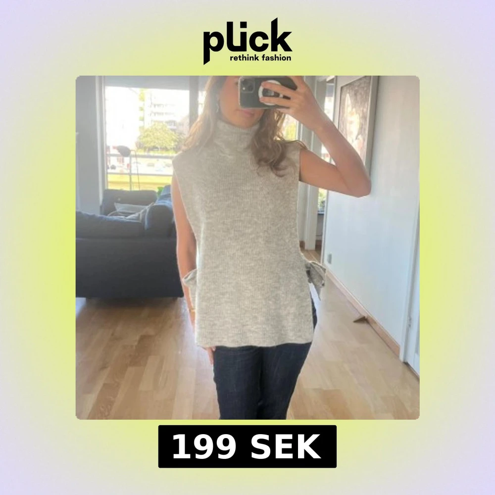 Ljusgrå stickad polotopp med ärmlös design och höga sidoslitsar. Toppen har snygga knytband i sidorna och en hög polokrage. Storlek M men passar även S om man vill ha den mer oversized som på bilden.❤️#trendig #stockholmsstil #kläder #fina #snygga #style #coola #outfits #trendy #copenhagenstyle