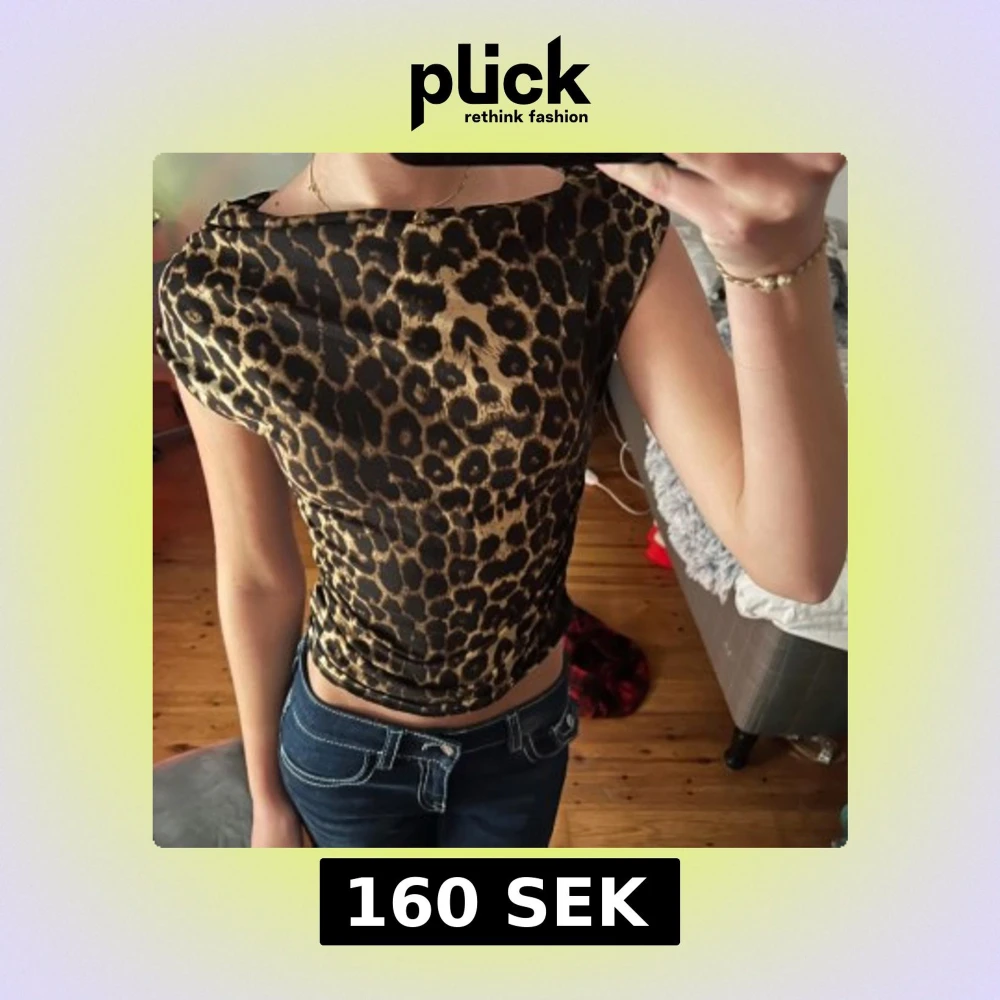 Säljer en snygg leopardmönstrad offshoulder topp med rynkade detaljer. Toppen har en ganska tajt passform och är perfekt för att ge en cool look. Materialet är mjukt och stretchigt, vilket gör den bekväm att bära.