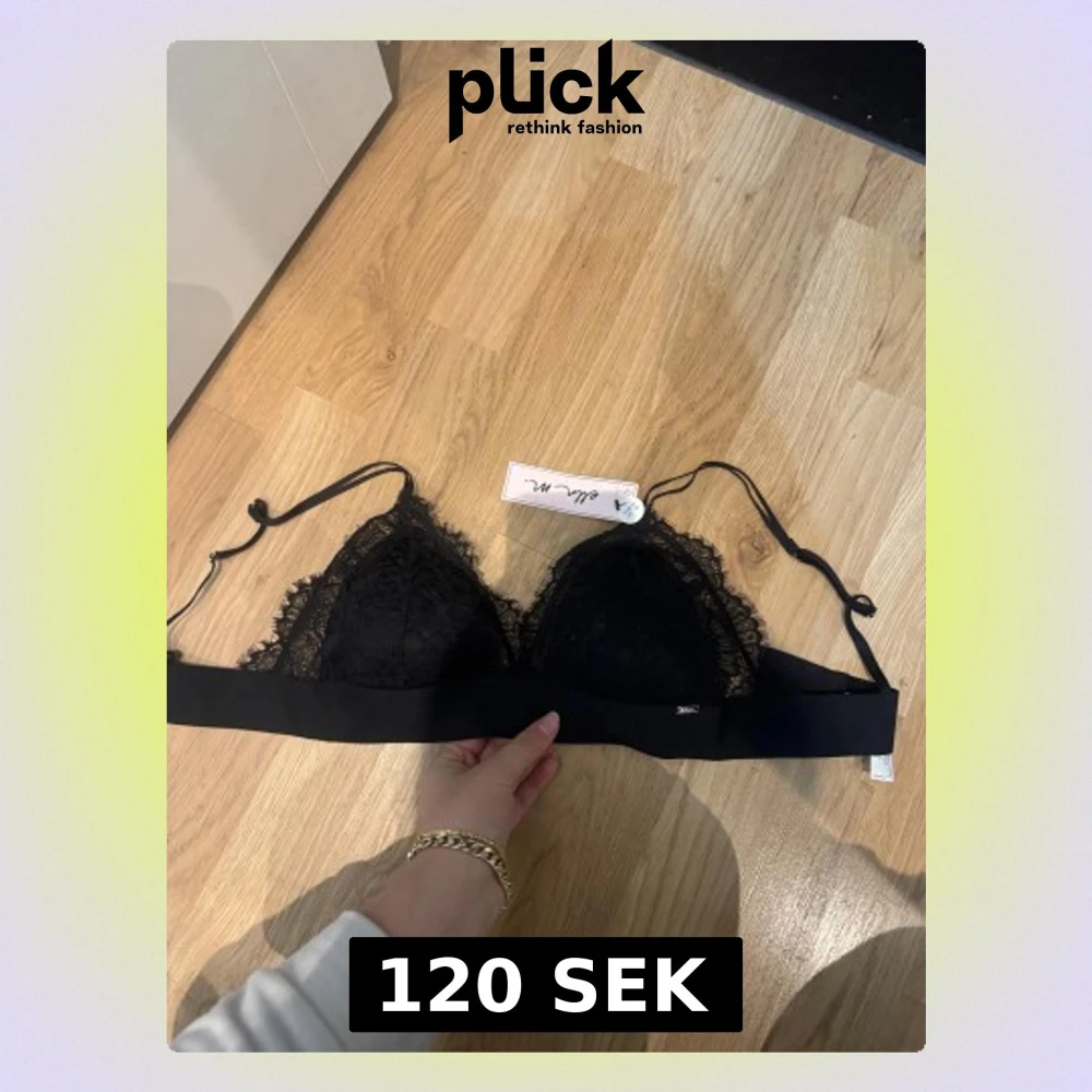 Säljer en svart spets bralette från Ella M. med snygga spetsdetaljer och justerbara axelband. Toppen har en bred elastisk kant under bysten och är axelbandslös med en feminin look. Helt oanvänd med prislappen kvar nypris 299kr.