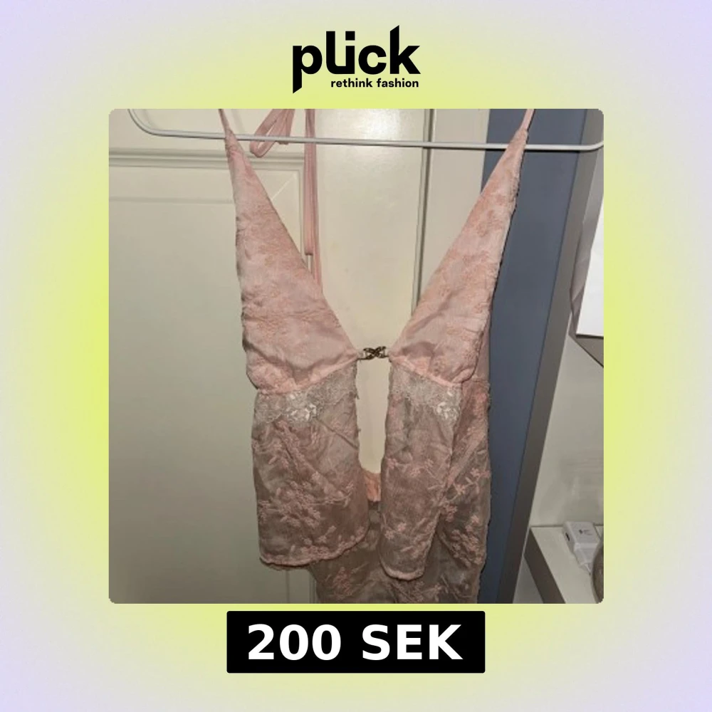Säljer en romantisk rosa topp med spetsdetaljer och djup v-ringning. Klänningen har smala axelband och en elegant design som passar perfekt för speciella tillfällen.super bra nu till sommaren