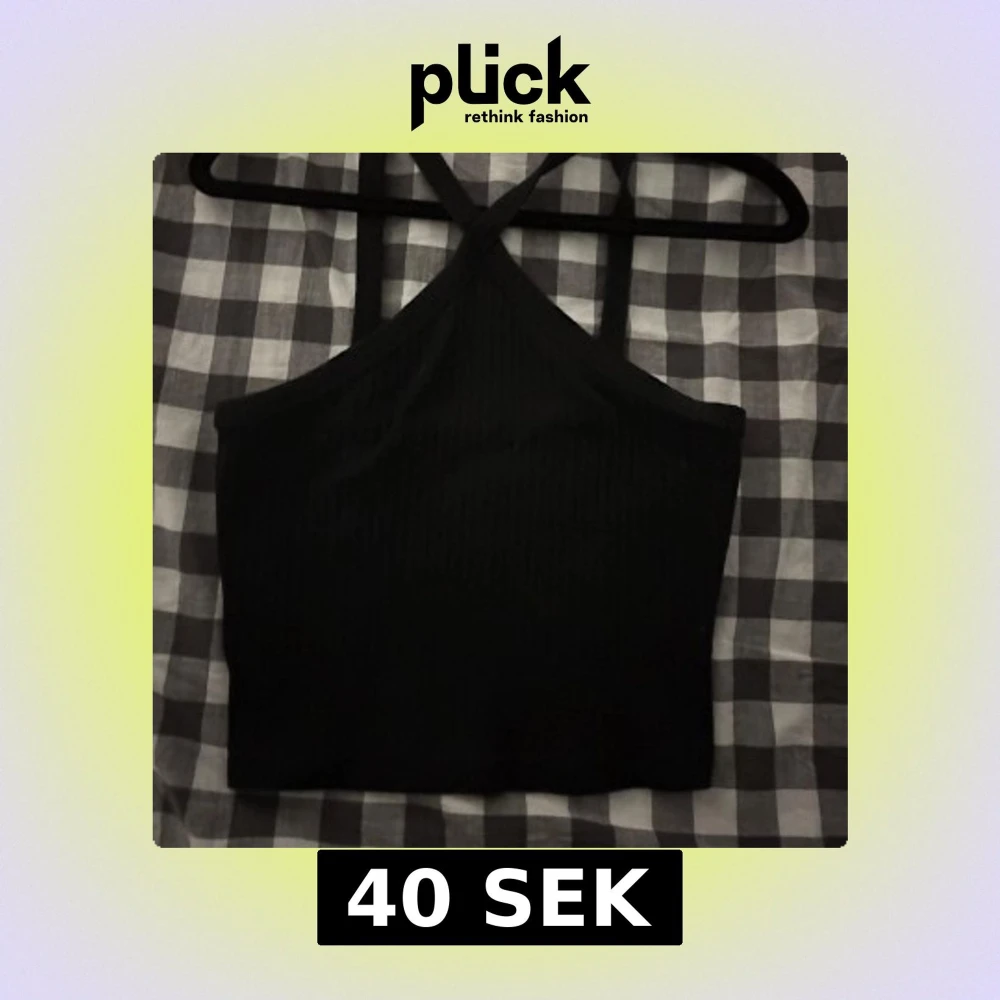 Svart croppad linnetopp med ribbad struktur och smala axelband som korsas i ryggen. Perfekt för dig som gillar enkel och stilren look. Snygg att matcha med jeans eller kjol för en chill vibe.