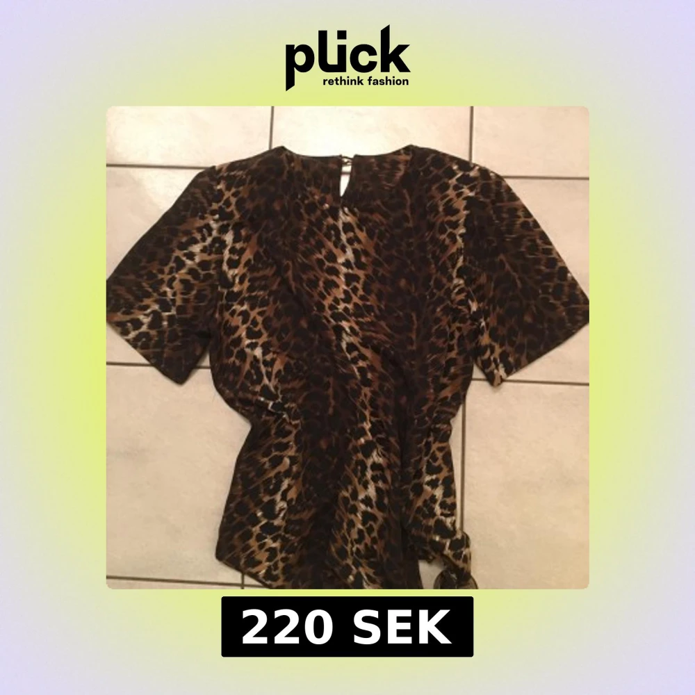 Snygg leopardmönstrad topp med korta ärmar och knytning i midjan. Perfekt för en djärv look.