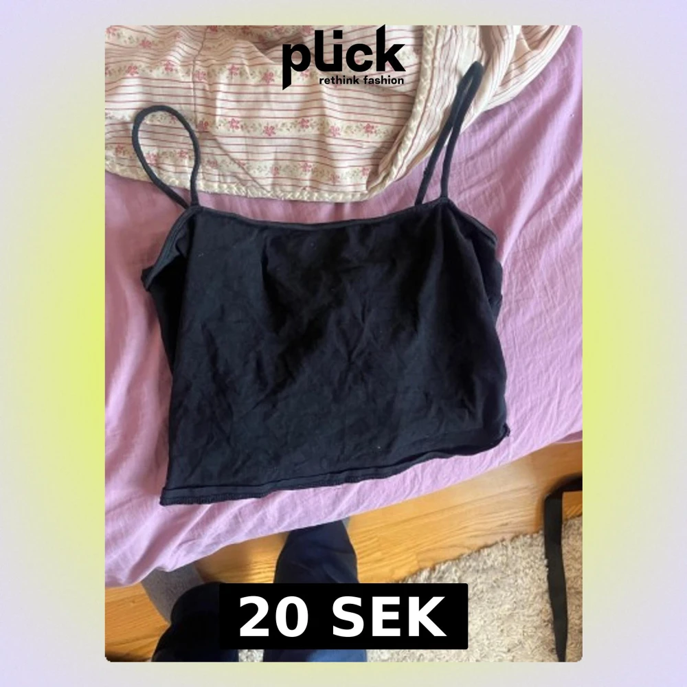 Enkel och stilren svart linnetopp med smala axelband. Perfekt att matcha med jeans eller kjol för en clean look. Tillverkad i mjuk bomull som känns skön mot huden. Croppad modell som ger en trendig vibe.
