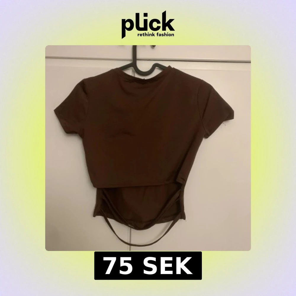 Säljer en brun croppad topp från MajorMade med korta ärmar och rund hals. Toppen har en unik omlott-detalj nedtill med snörning baktill som ger en cool look. Materialet är lite träningsajtigt, mjukt och stretchigt, perfekt för dig som gillar trendiga och bekväma plagg.