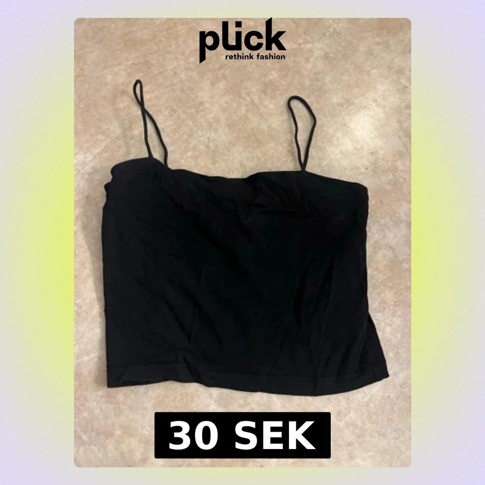Säljer en enkel och stilren svart croppad linnetopp med tunna axelband. Perfekt att matcha med höga jeans eller kjol. Materialet känns mjukt och lätt, vilket gör den skön att bära under varma dagar.