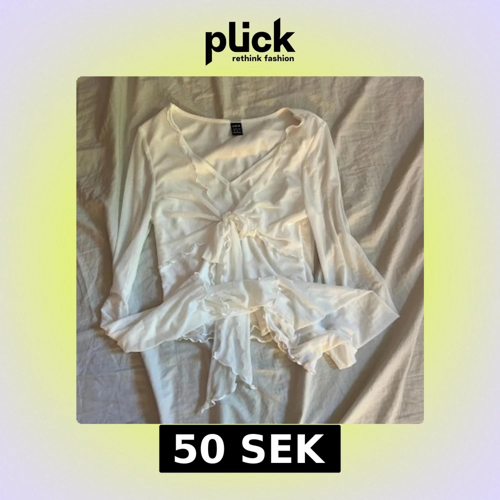 Superfin vit omlottopp från Shein med långa ärmar, volangdetaljer och knyt framtill. Tunn och flowy känsla, perfekt för lager-på-lager. Djup v-ringning och romantiska vibes med de vågiga kanterna.