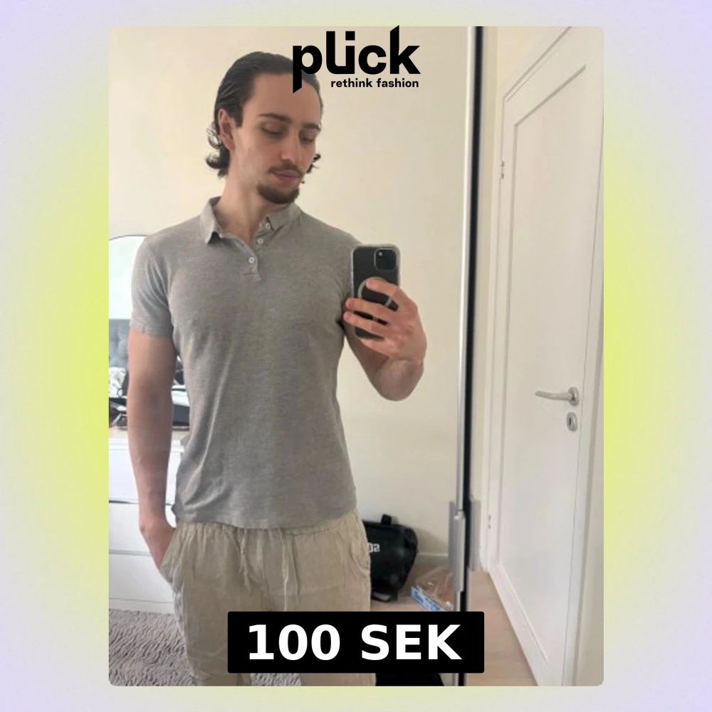Säljer en stilren grå pikétröja med korta ärmar och klassisk krage. Tröjan har knappslå med tre knappar framtill och är i ett mjukt bomullsmaterial. Perfekt till jeans eller shorts för en clean look.