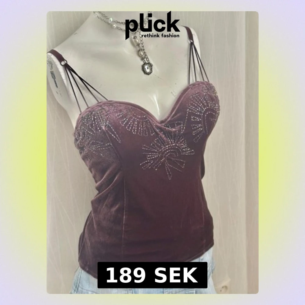 Supersnygg mörklila linnetopp från Principles i mjuk sammet. Toppen har tunna axelband, dekorativa pärlor och broderade detaljer framtill. Perfekt för dig som vill sticka ut med en unik och trendig look.